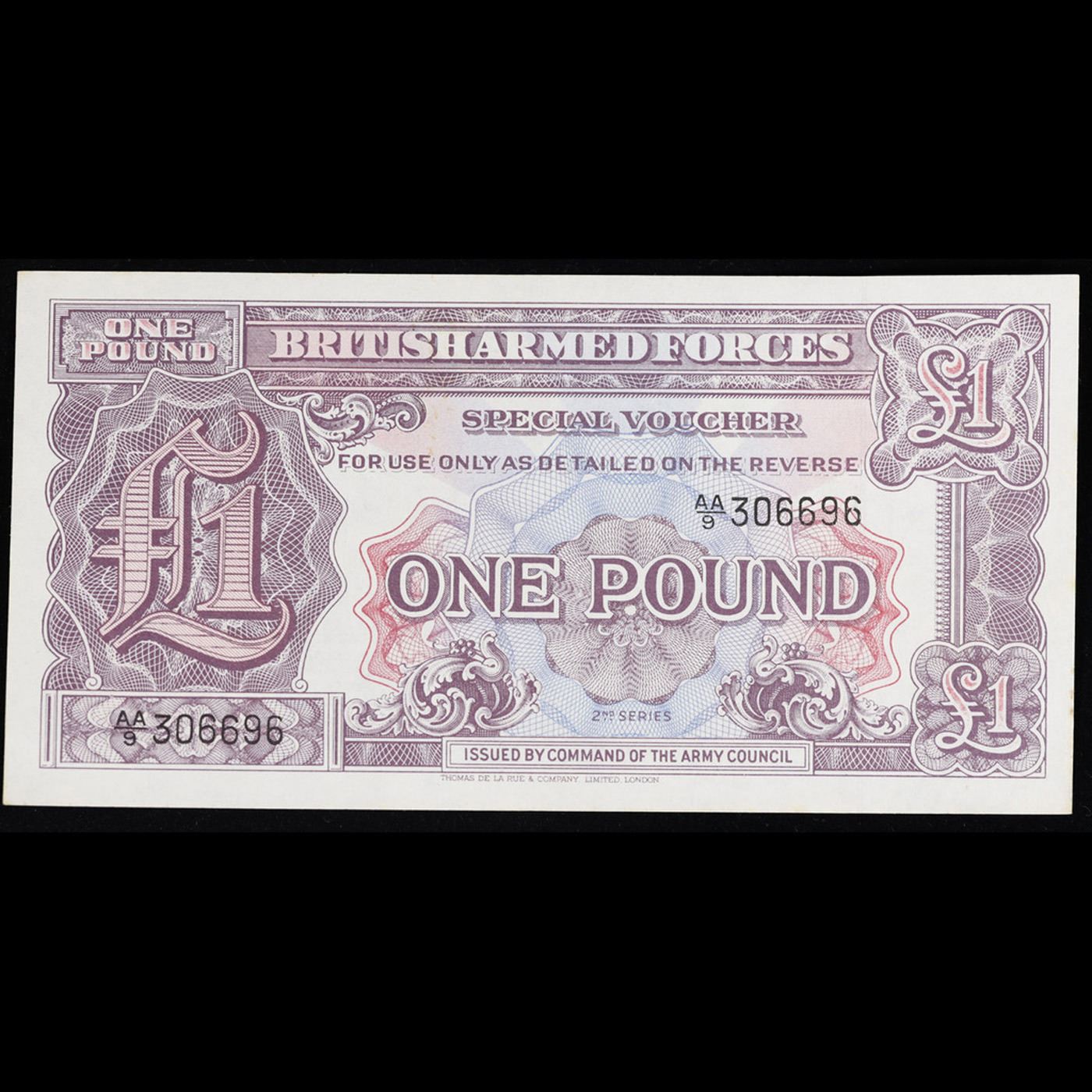 2x Consecutive 1948 2nd Series British Armed Forces 1 Pound Special Voucher, CU! P# M22a Grades Gem CU.