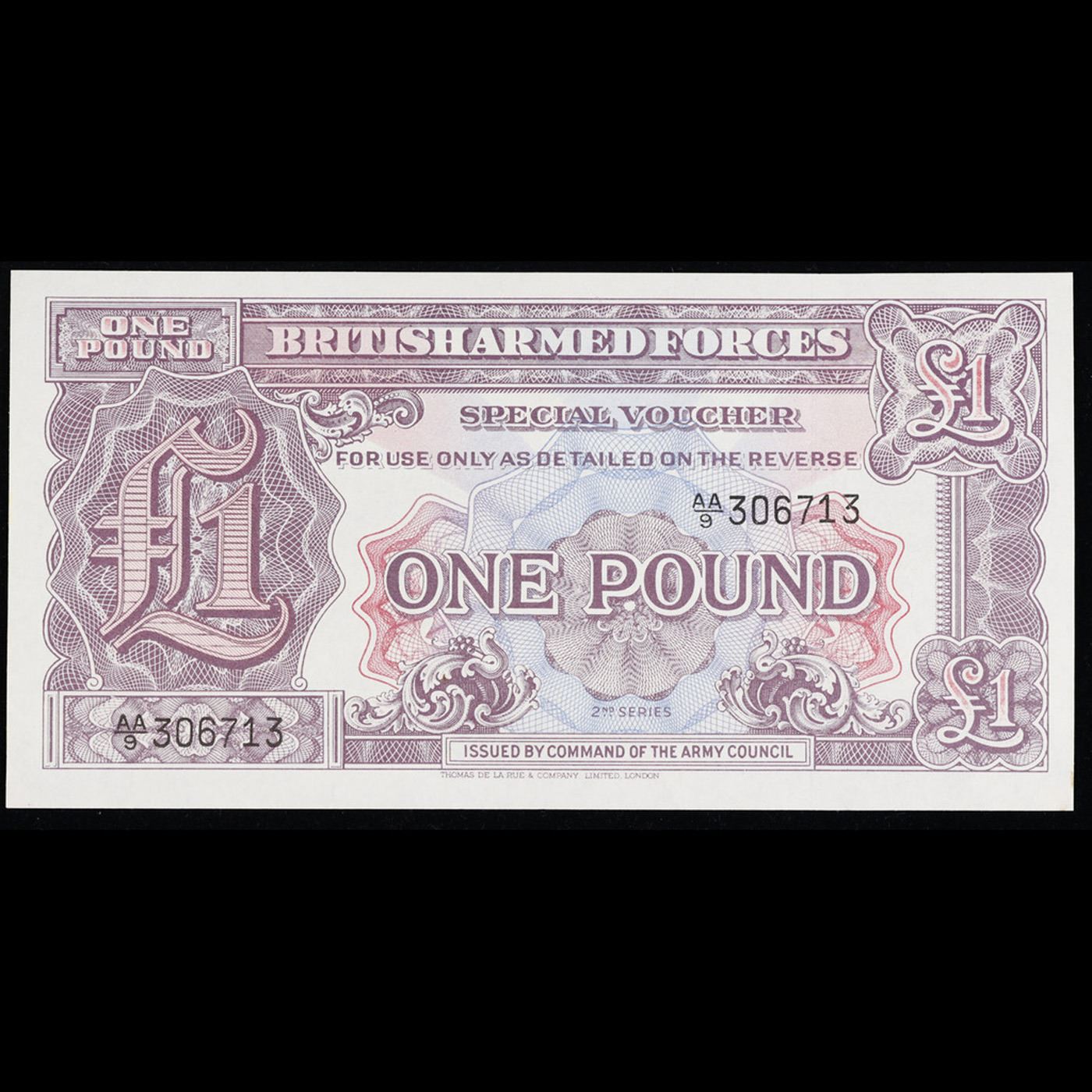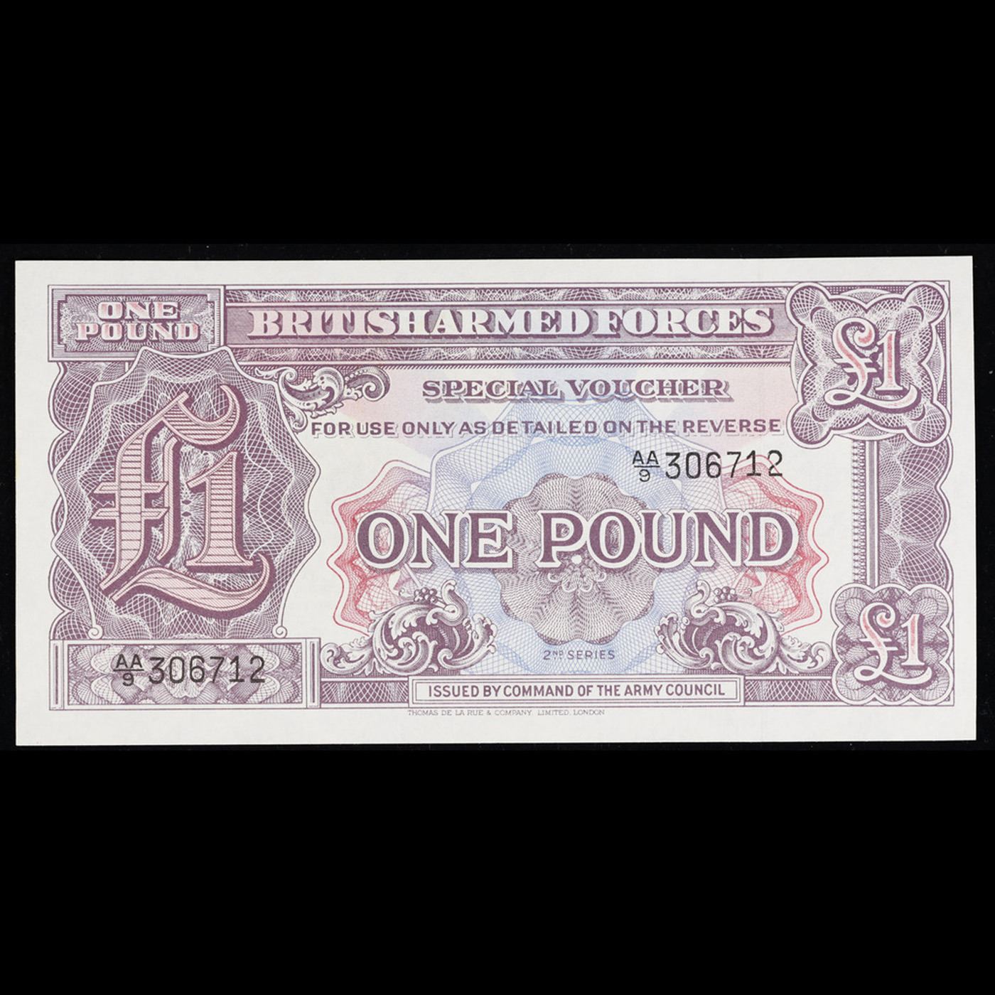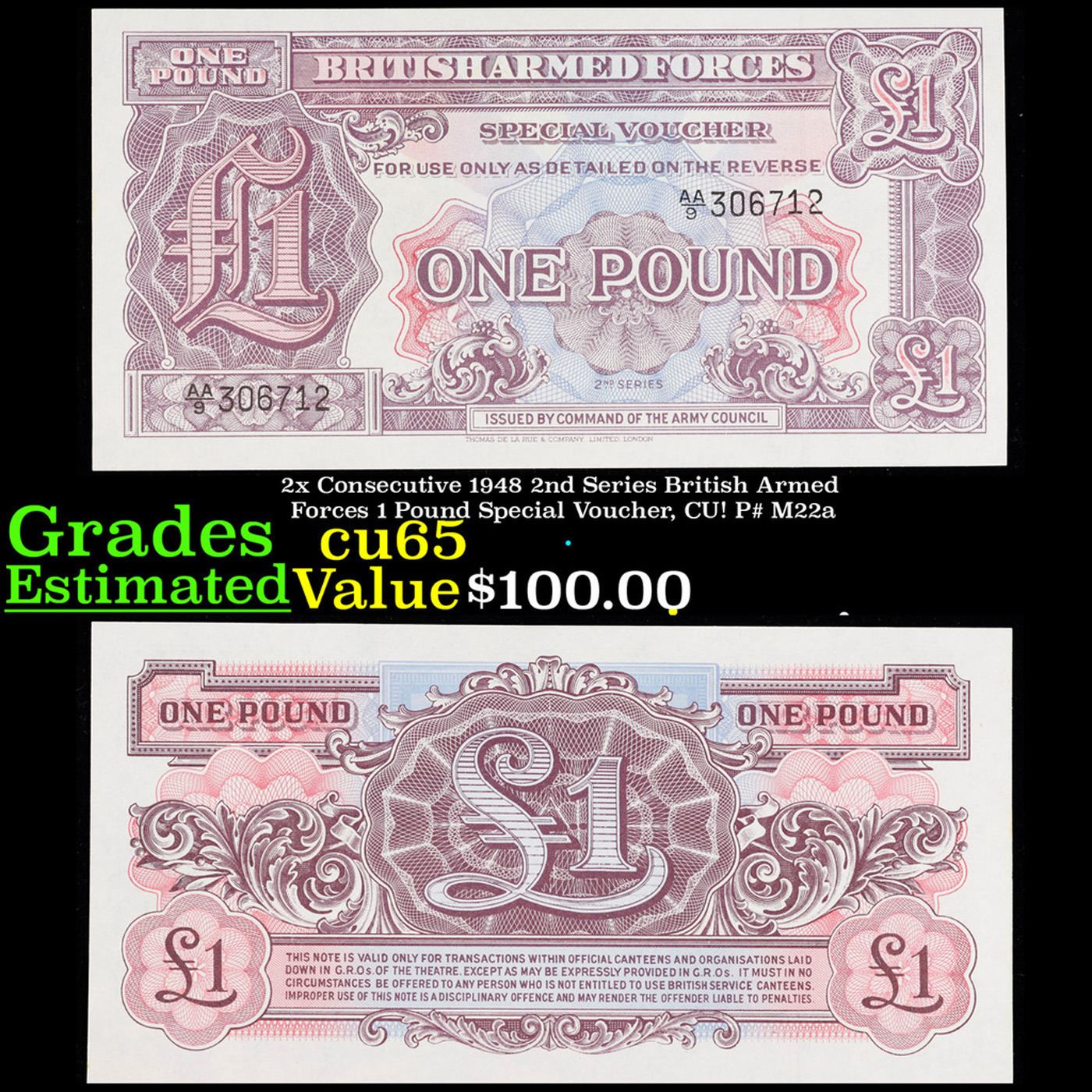 2x Consecutive 1948 2nd Series British Armed Forces 1 Pound Special Voucher, CU! P# M22a Grades Gem CU.