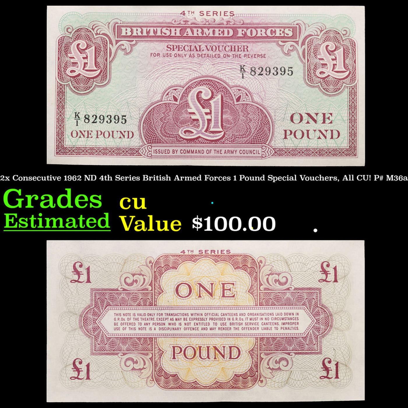 2x Consecutive 1962 ND 4th Series British Armed Forces 1 Pound Special Vouchers, All CU! P# M36a Grades CU.