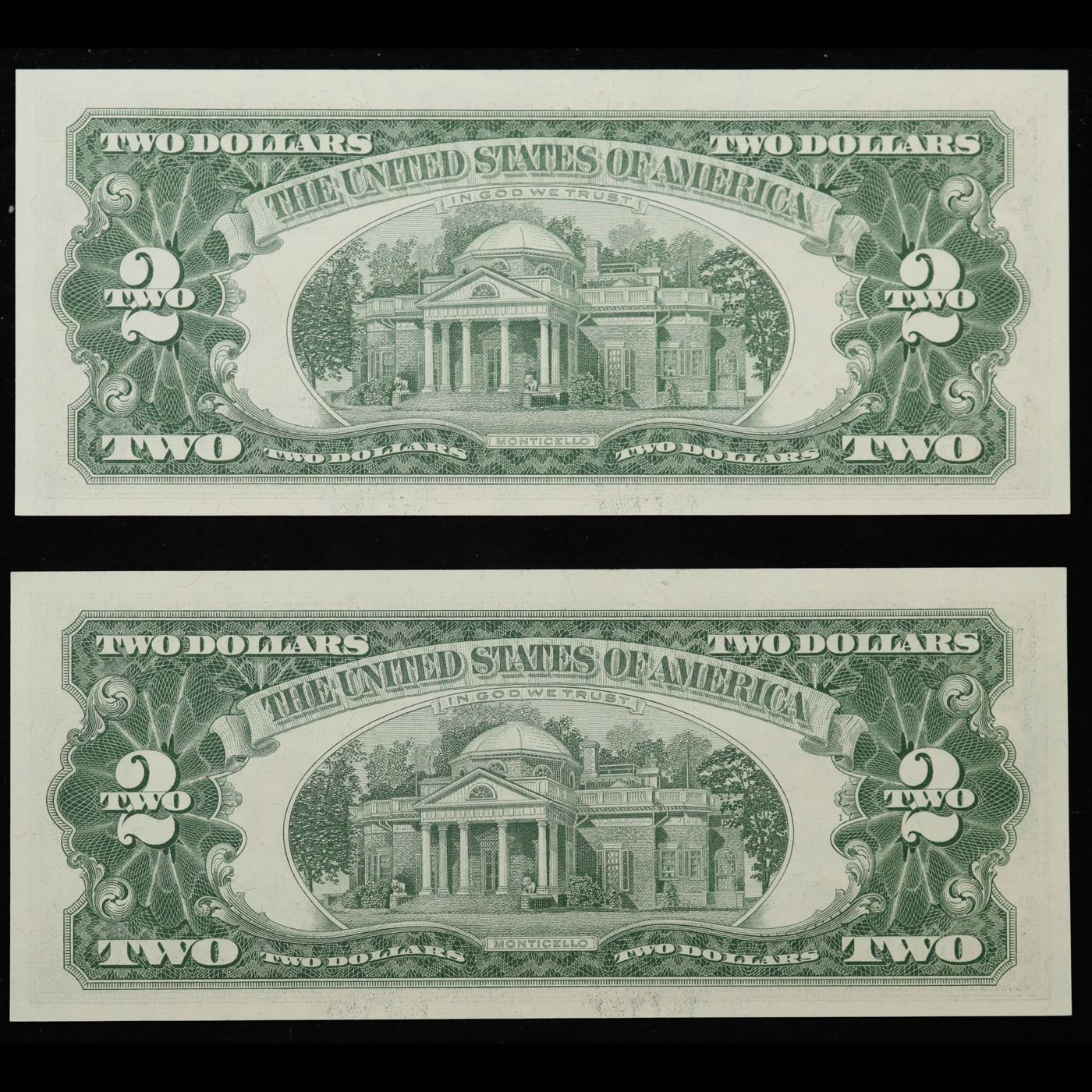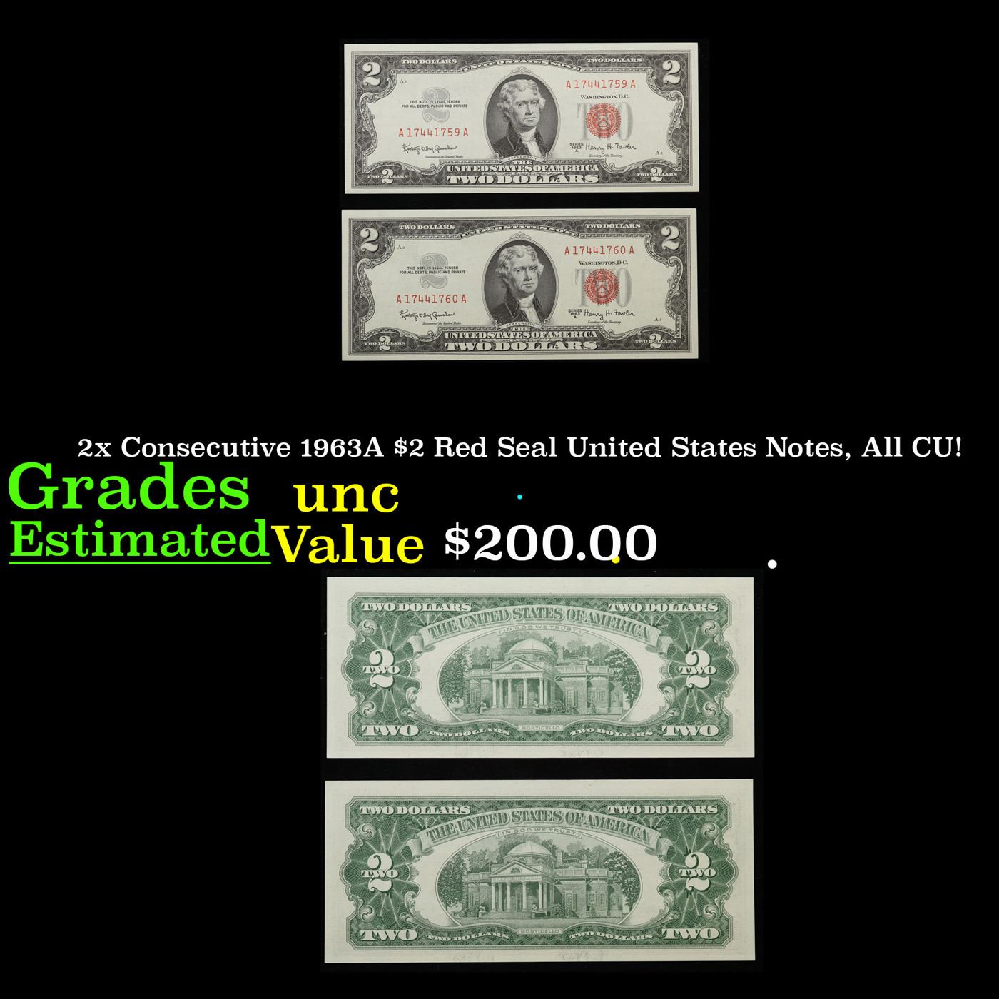 2x Consecutive 1963A $2 Red Seal United States Notes, All CU! Grades Brilliant Uncirculated