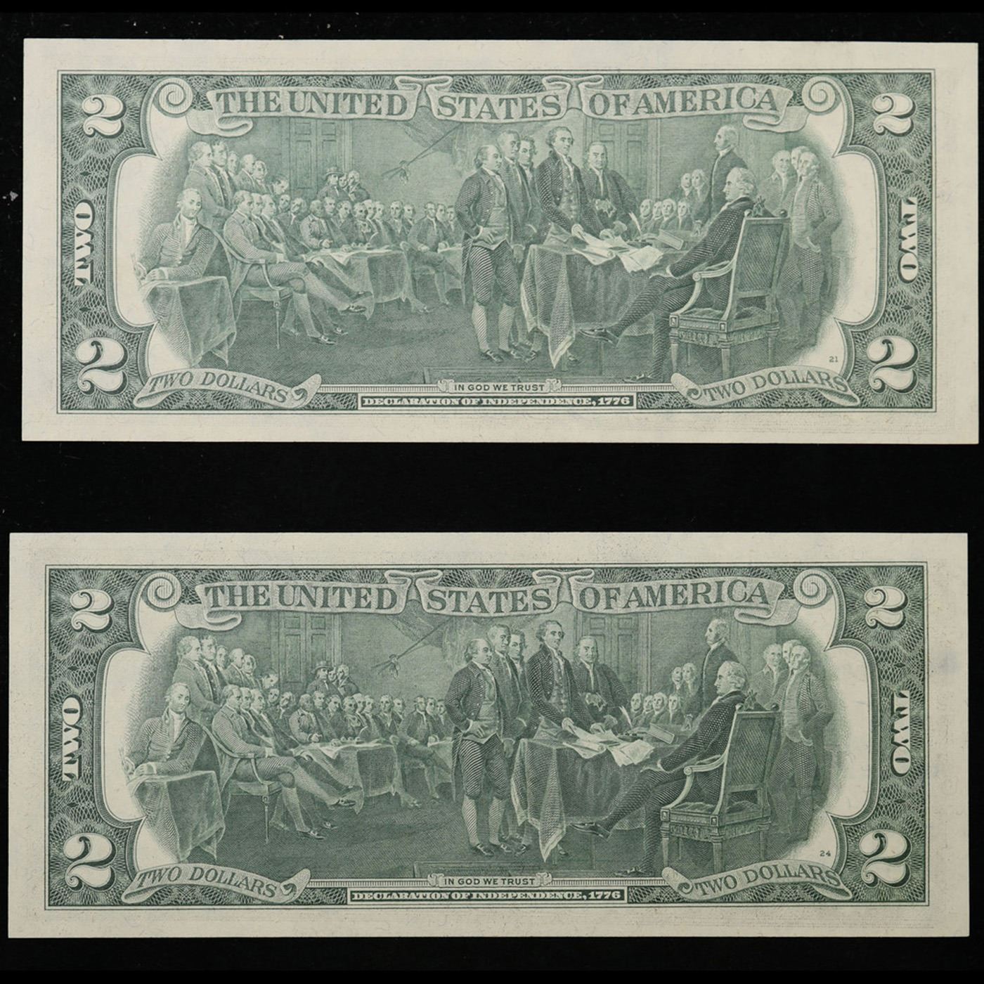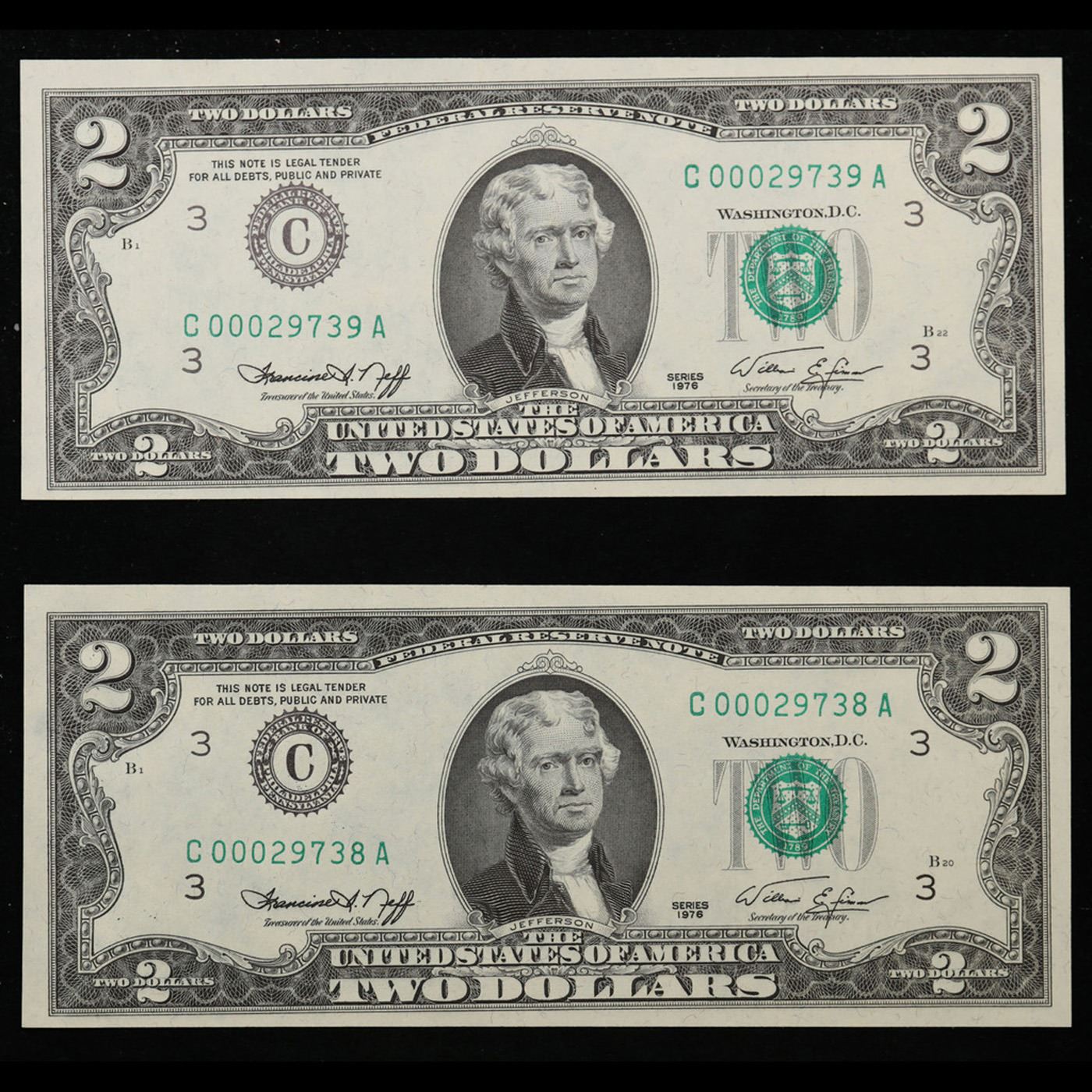2x Consecutive 1976 $2 Federal Reserve Notes (Philadelphia, PA) All CU! Grades Brilliant Uncirculated.