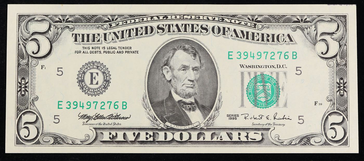 2x Consecutive 1995 $5 Federal Reserve Notes (Richmond, VA), All CU! Grades CU