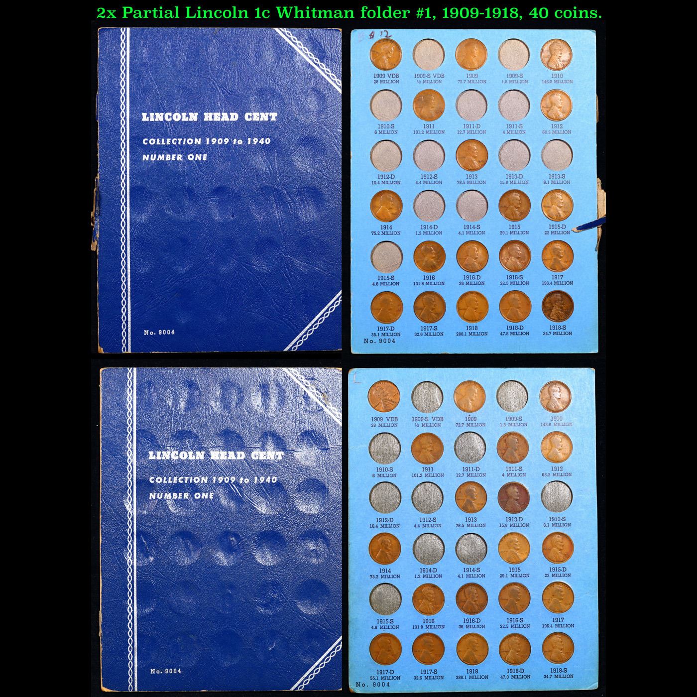 2x Partial Lincoln 1c Whitman folder #1, 1909-1918, 40 coins.. All coins encased in 2 nice Whitman Lincoln One Cent Folder Number 1 . Dates Range from 1909-1918. A fantastic grouping of 40 coin all from 1909-1918 and contained two 1909-p VDB cent!