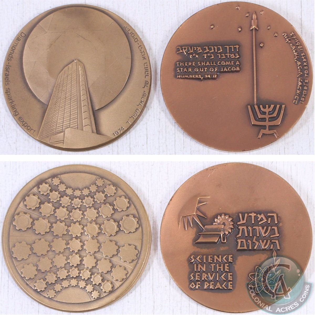 2x State of Israel "Science in the Service of Peace" & "Diamonds-Israel 's Sparkling Export" Medallions. 2pcs