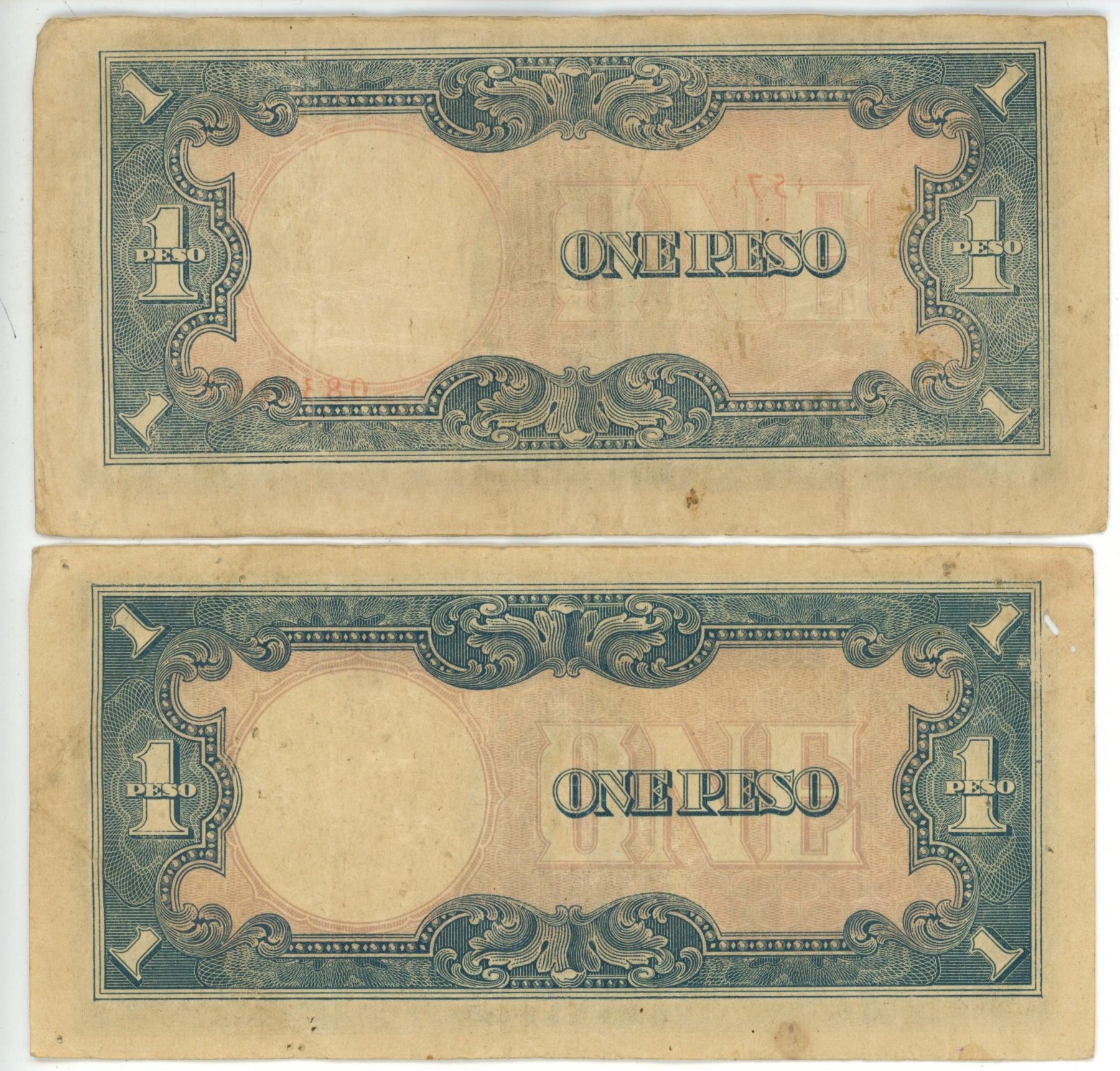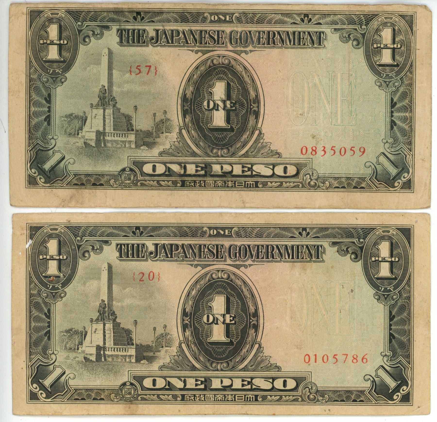 2x The Japanese Government 1 Peso bank note (WWII Military Invasion Currency)
