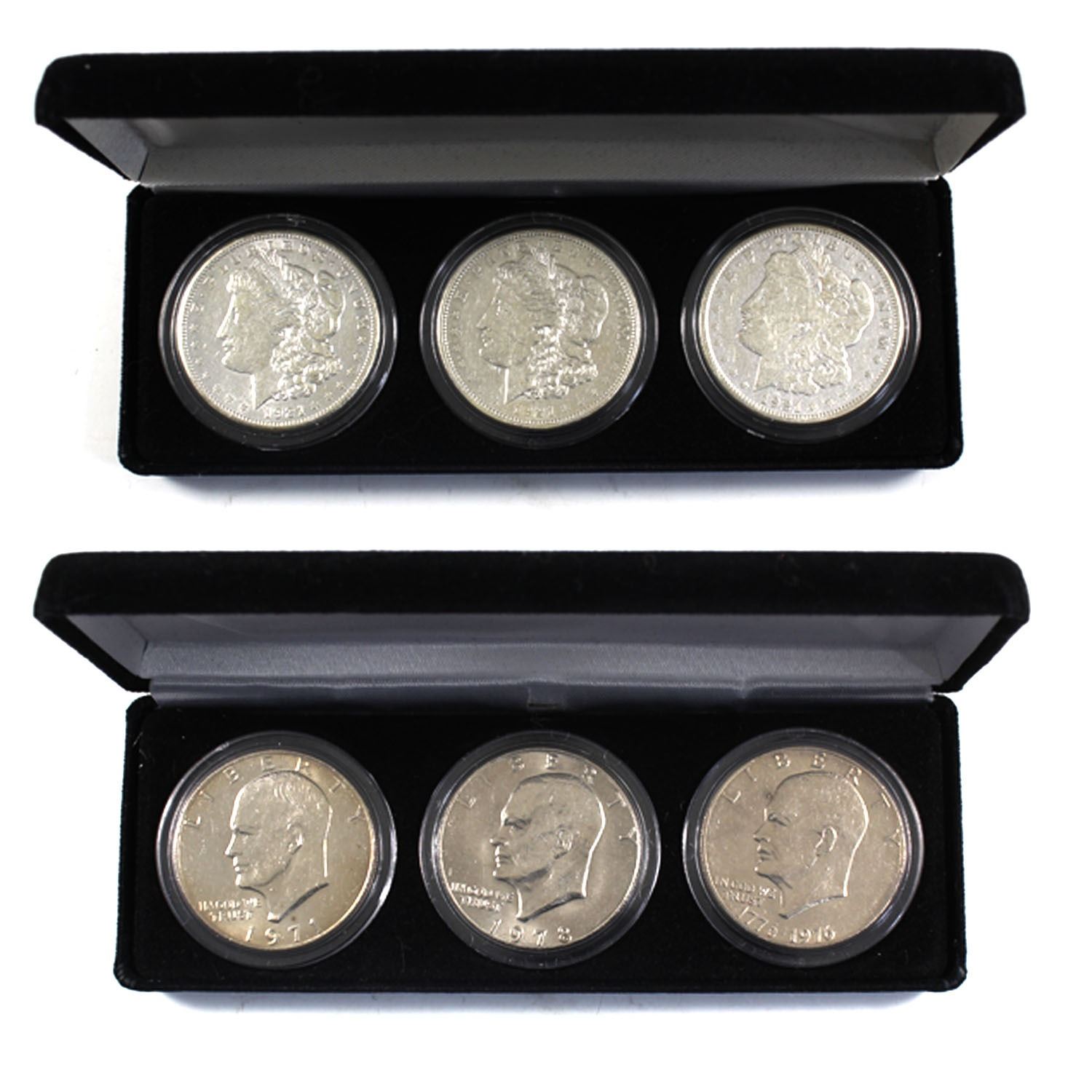 2x United State One Dollar 2-Coin Set: Lot includes the 1971, 1976, & 1978 Eisenhower Dollars & 3x 1921 Morgan Silver Dollar.