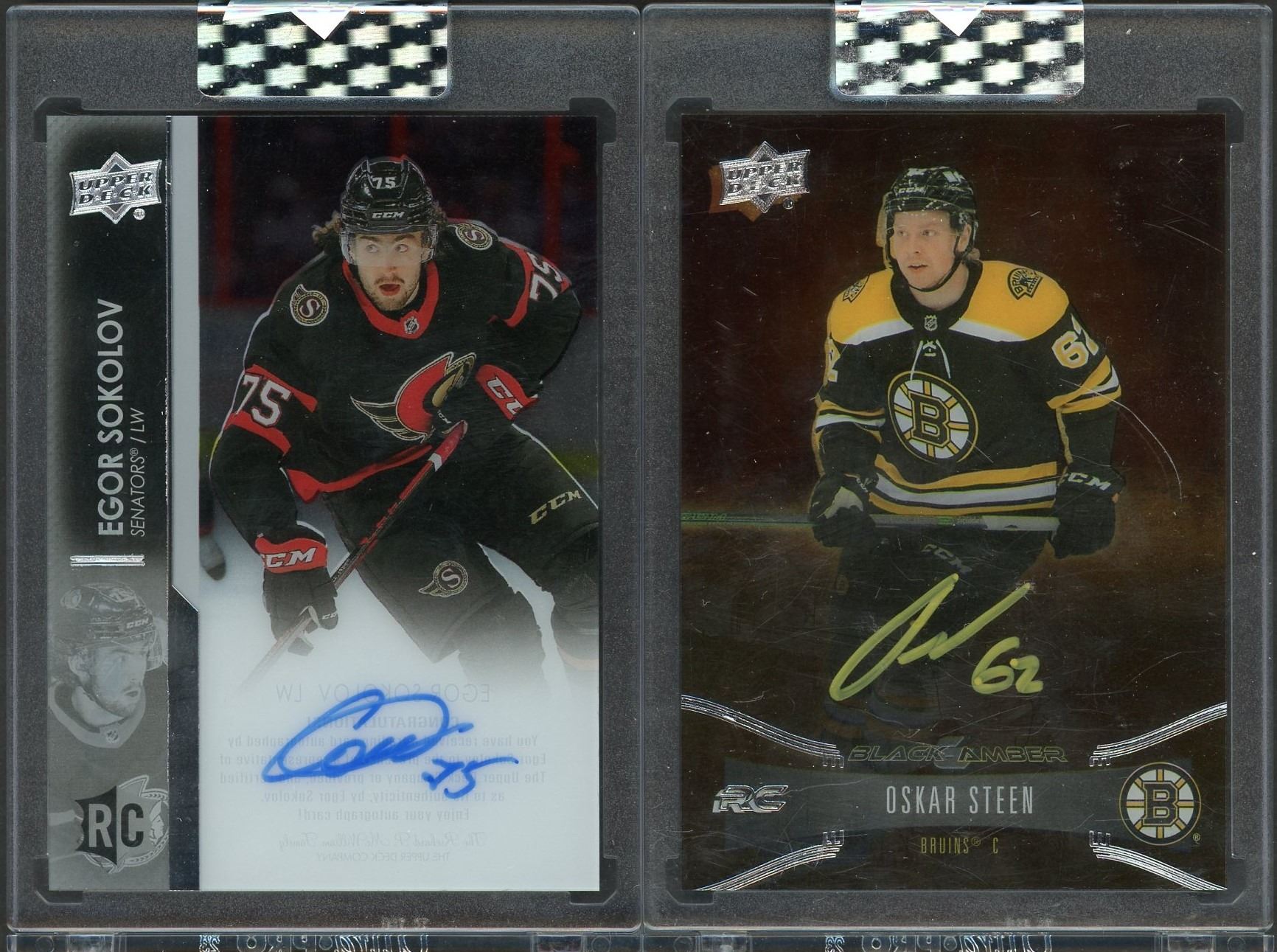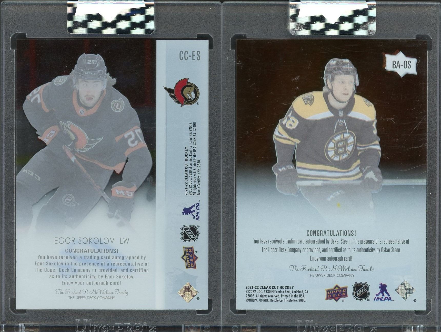 2022-23 UD Clear Cut autographs of Oskar Steen and Egor Sokolov