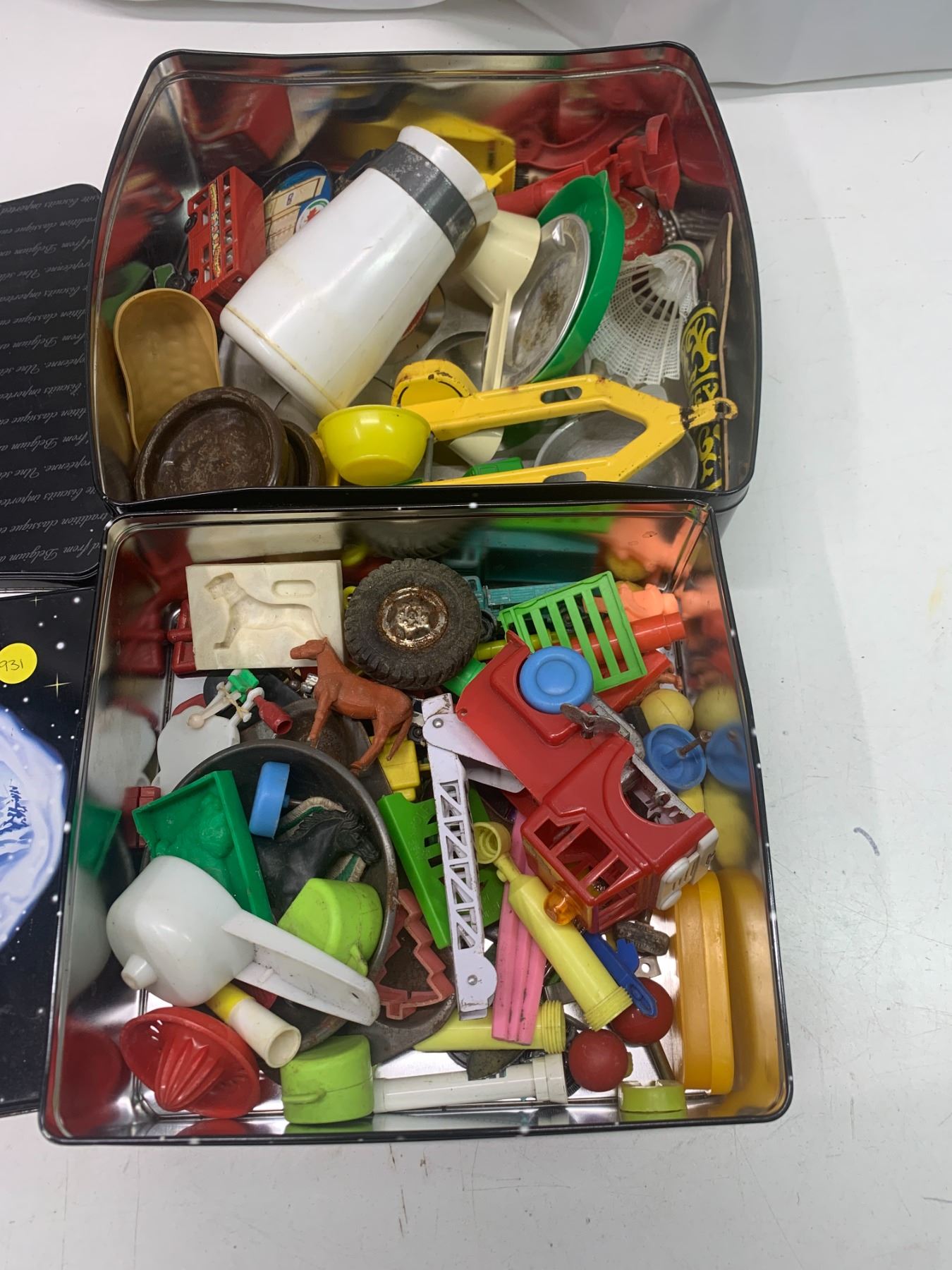 2x tins with toys