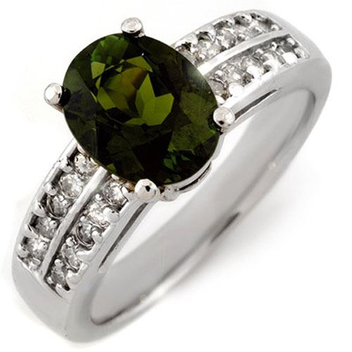 3.0 CTW Green Tourmaline & Diamond Ring 14K White Gold ---- Luxury Designer Brand Ring Appraised Retail Price at $6,150 ---- SKU Number US11559 14k White gold Ring Size is 6.75, Ring measuring approx. 5/16" x 11/16" , weighing in total approx. 5.6 grams. Made in the USA and is stamped 14k, Main stone 2.5 carat total weight containing 1 pieces of Saturated Bluish Green color with AAA quality Oval shape cut Tourmaline , Stone #2 0.5 carat total weight containing 20 pieces of H-I color with VS/SI quality Round shape cut