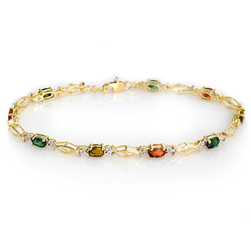 REF-30X8T -13409 ---- 3.0 CTW Multi-Color Sapphire Bracelet 10K Yellow Gold ---- Luxury Designer Brand Bracelet Appraised at $2,050 Certificate Number US13409 10k Yellow gold, Bracelet Size is 7 Inches, Bracelet measuring approx. 7" x 1/8", weighing in total approx. 4 grams. Made in the USA and is stamped 10k, Main stone 3 carat total weight containing 9 pieces of Translucent Colors color with AAA quality Oval shape cut Sapphire , Stone #2 carat total weight containing pieces of color with quality shape cut