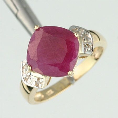 3.0 CTW. CENTER GEM CUT - 10X10 MM CUSHION CUT -GEM ACCENT OF 6 DIAMONDS - ROUND FULL CUT - 10KY GOLD SETTING