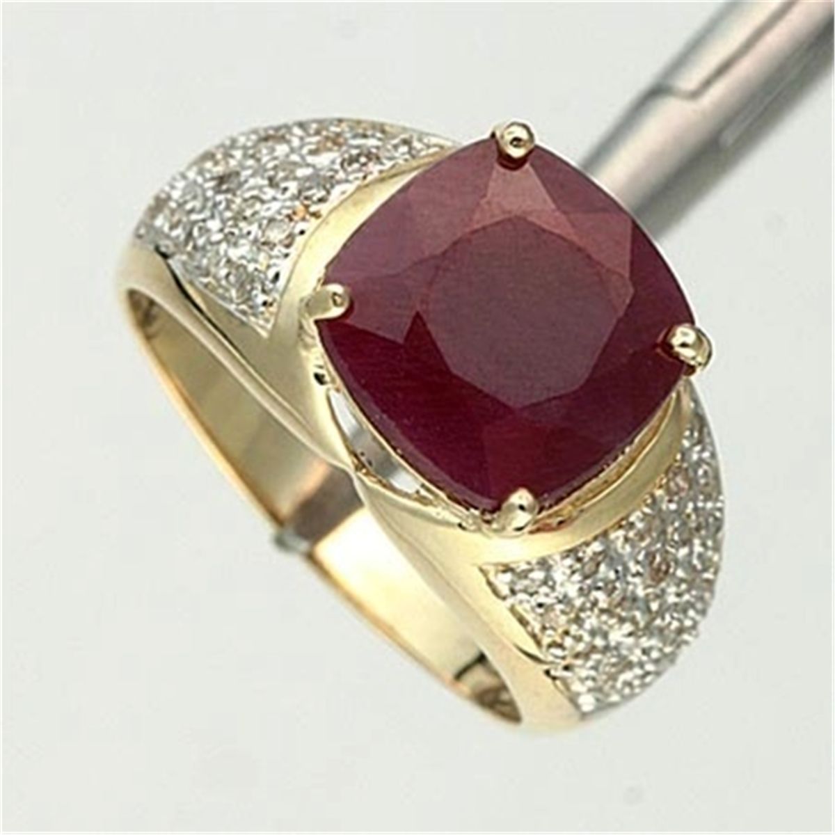 3.0 Ctw. Ruby - 10x10 Mm Cushion Cut - 40 Diamonds -Round Full Cut - 10ky Gold