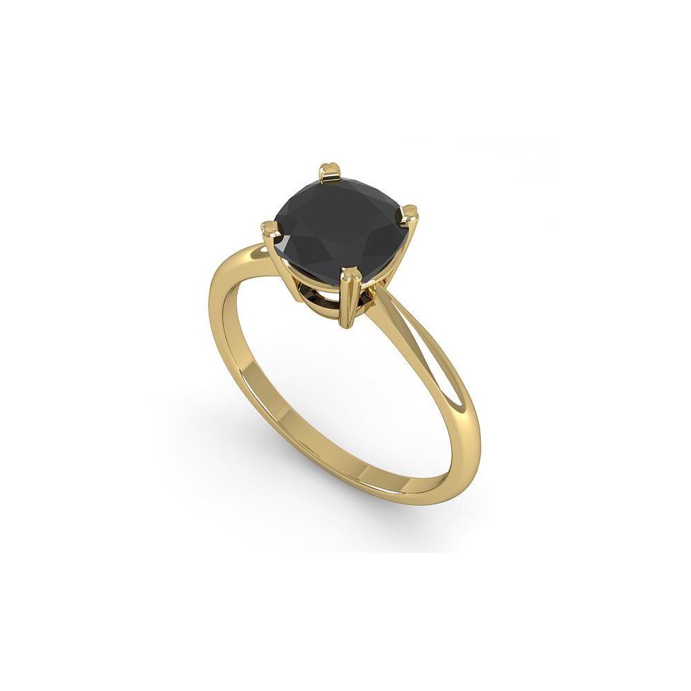 3.0 ctw Cushion Black Diamond Engagement Designer Ring 14K Yellow Gold