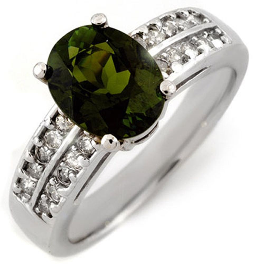 REF-79H6R - SKU: 11559 ---- 3.0 ctw Green Tourmaline & Diamond Ring 14k White Gold