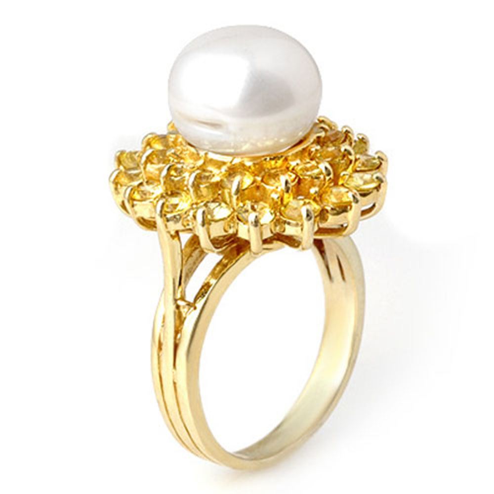 REF-55F2M - SKU: 10349 ---- 3.0 ctw Yellow Sapphire & Pearl Ring 10k Yellow Gold