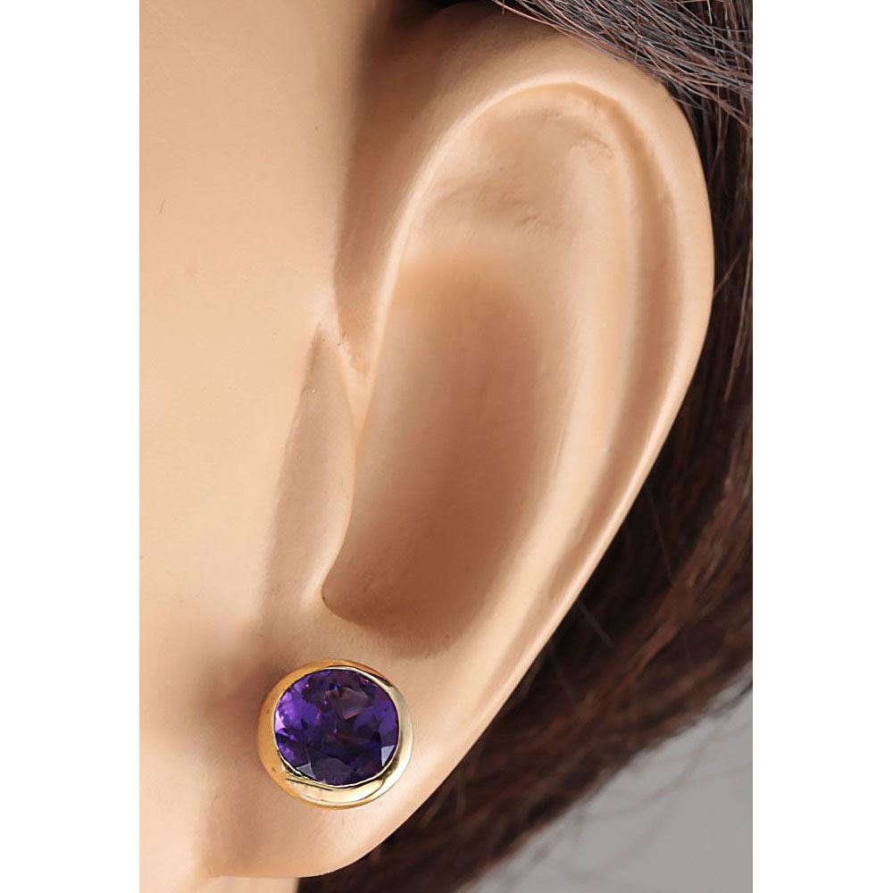 3.00 CTW Natural Amethyst Earrings 18K Solid Yellow Gold