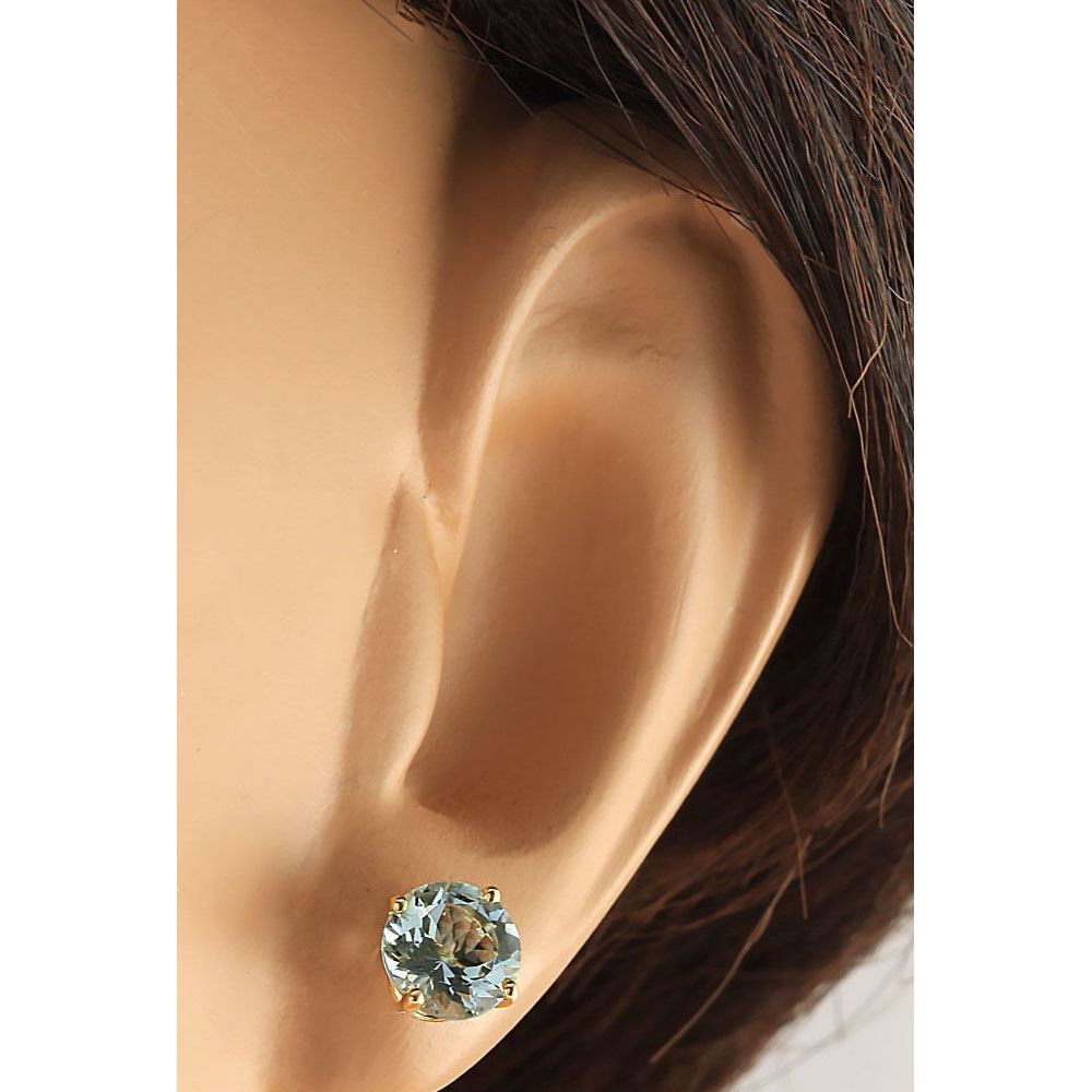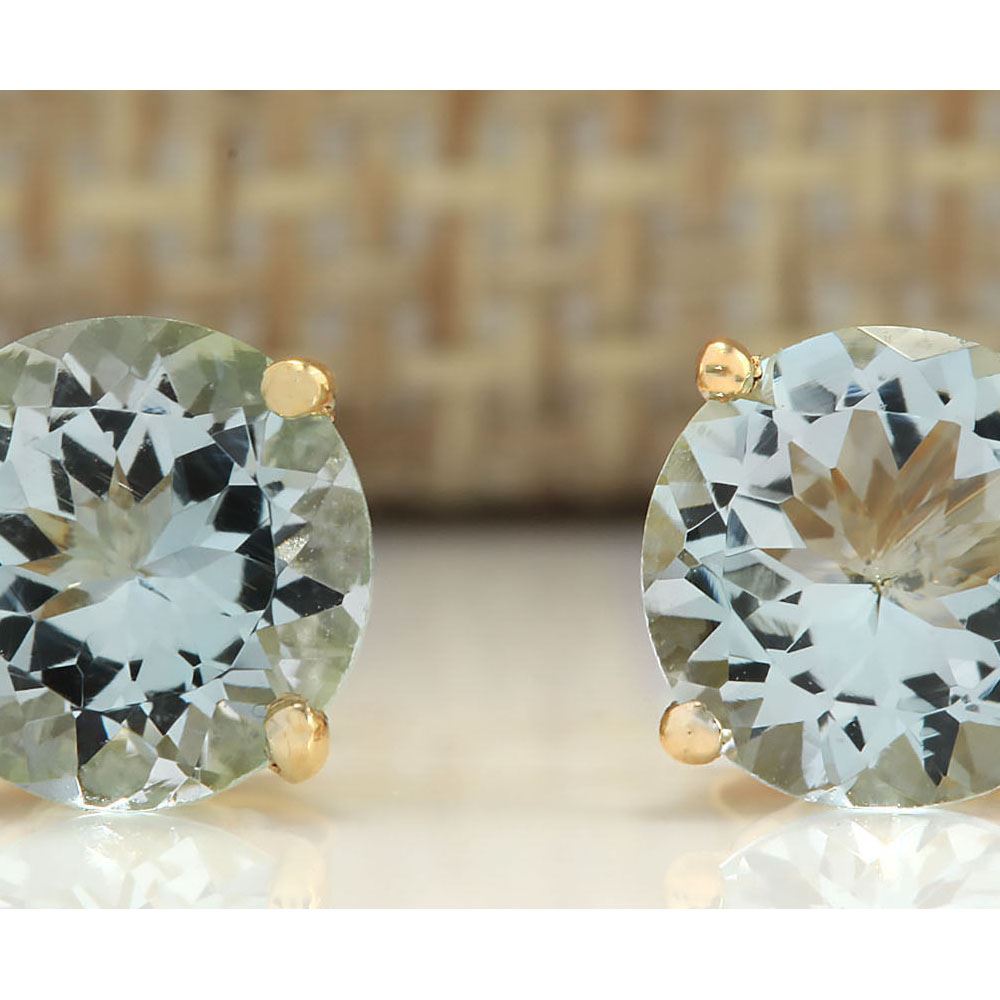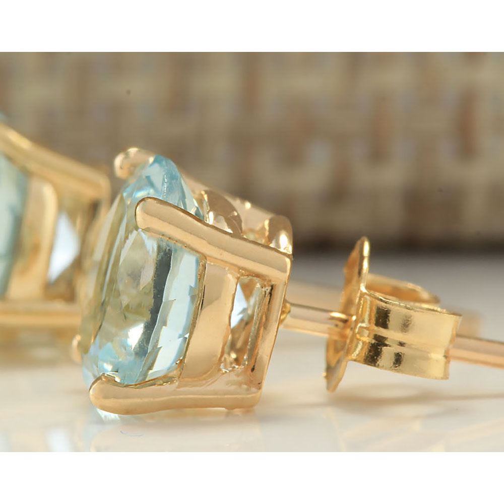 3.00 CTW Natural Blue Aquamarine Earrings 14k Solid Yellow Gold