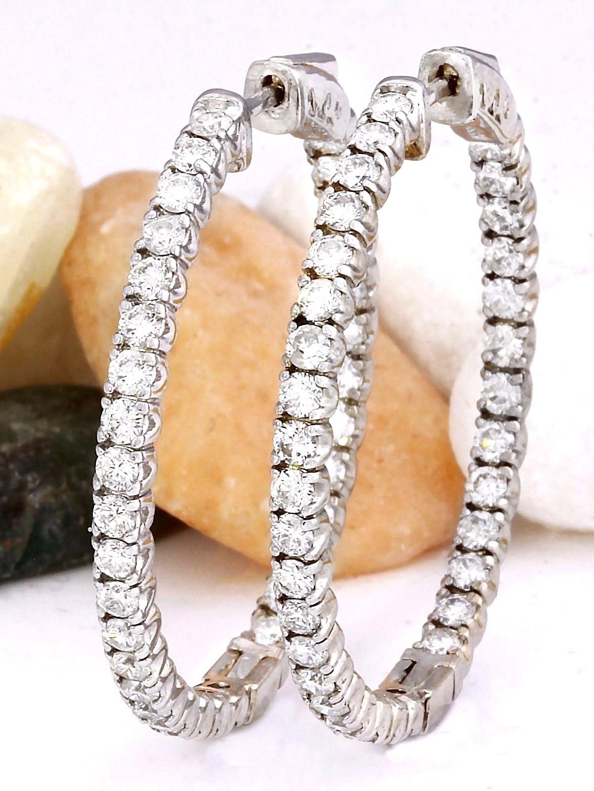 3.00 Carat Natural Diamond 18K Solid White Gold Earrings