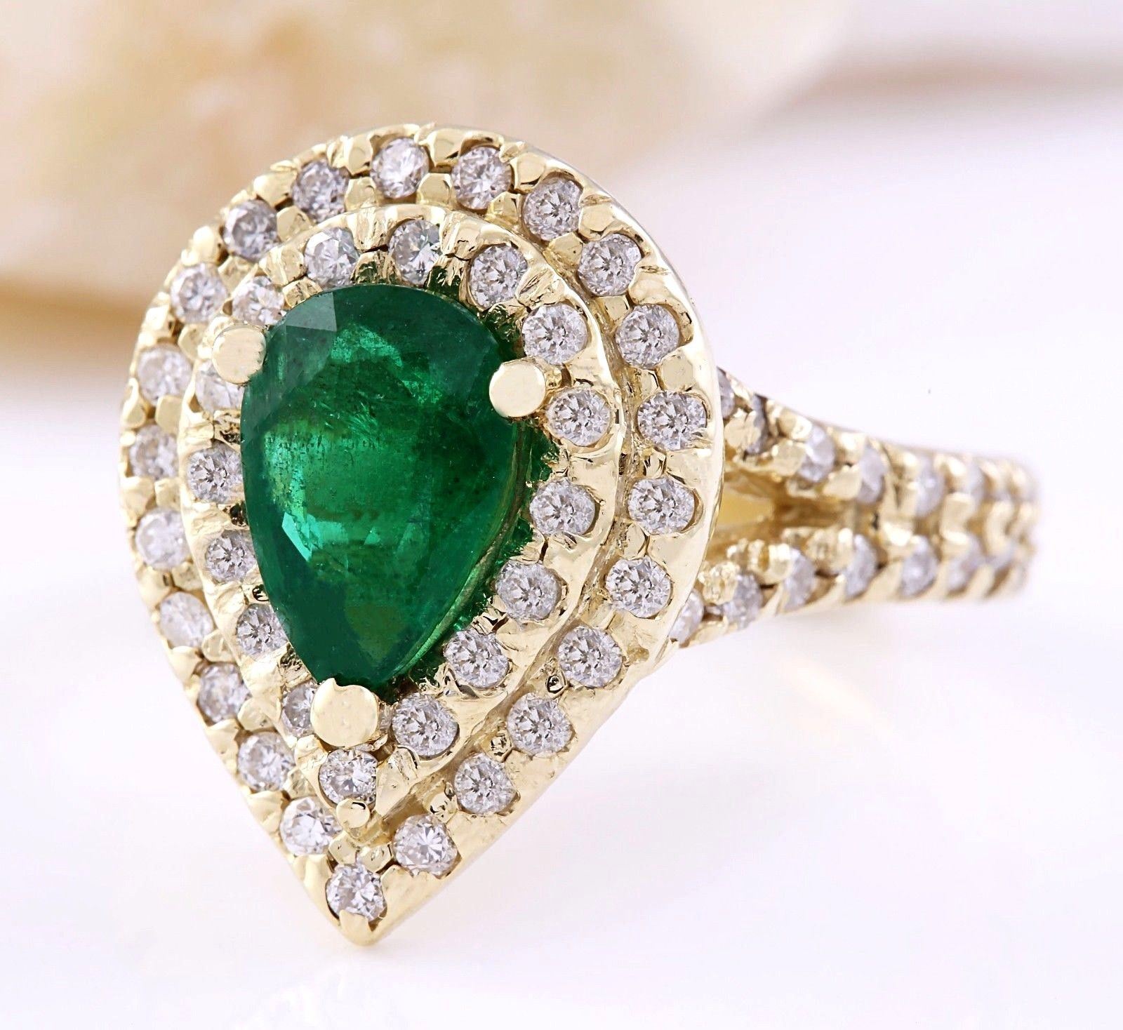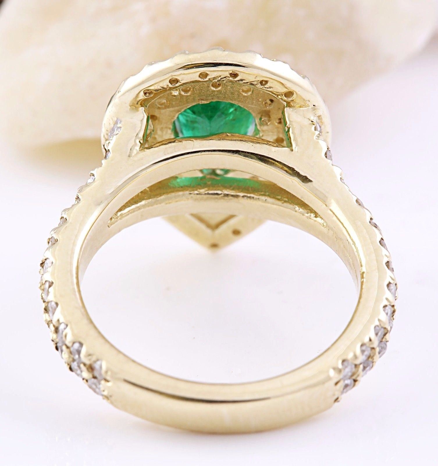 3.00 Carat Natural Emerald 18K Solid Yellow Gold Diamond Ring