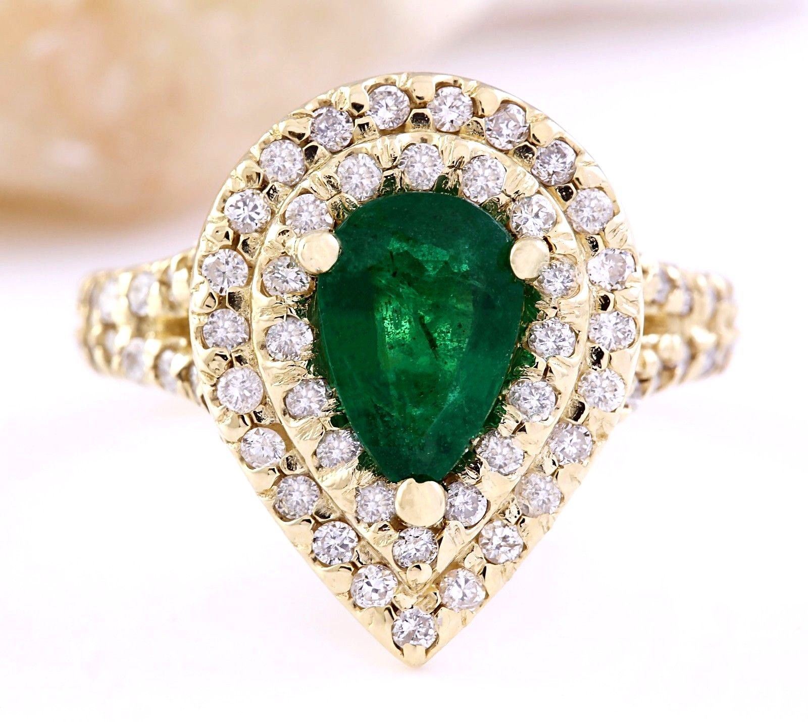 3.00 CTW Natural Emerald 18K Solid Yellow Gold Diamond Ring