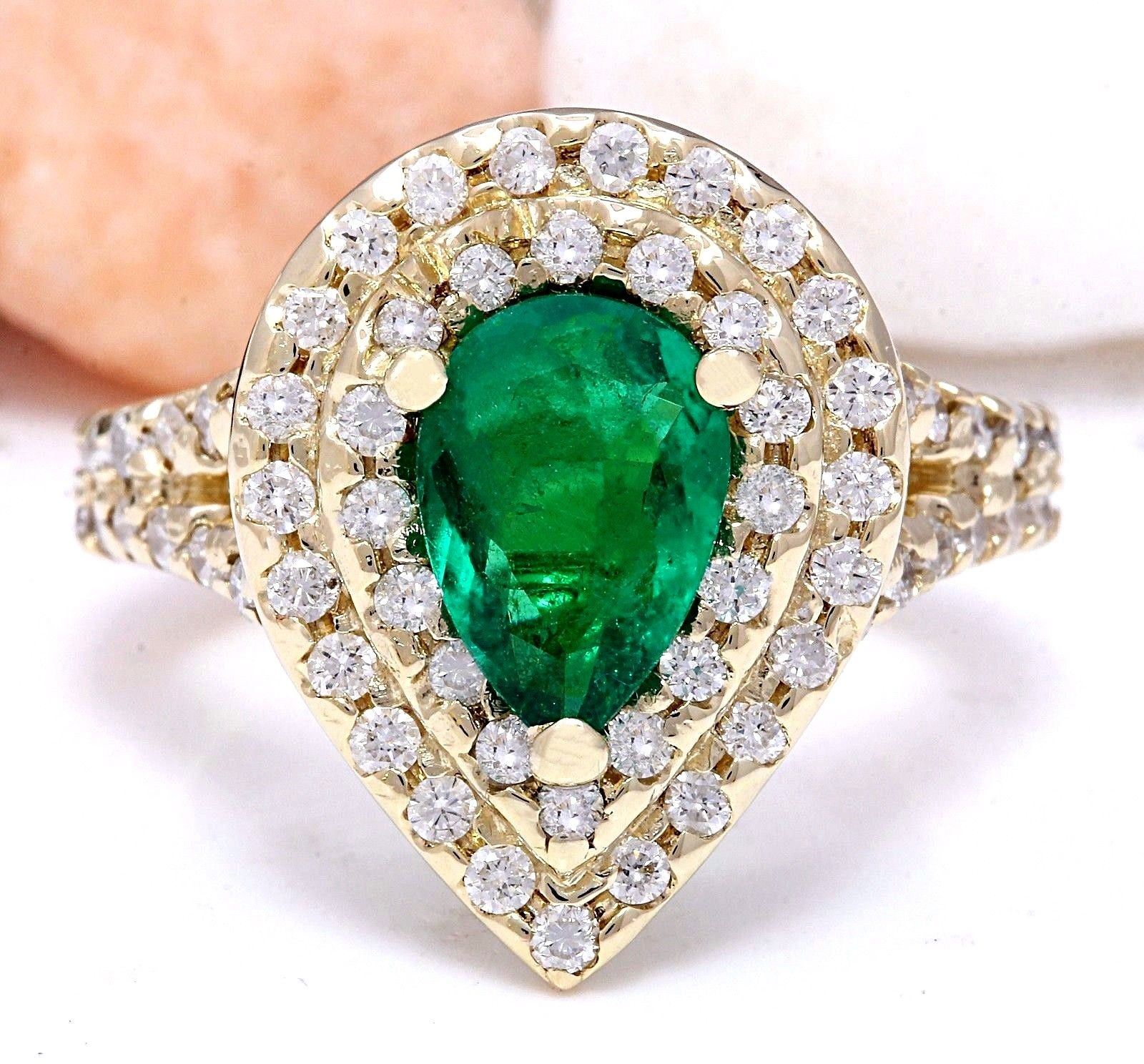 3.00 Carat Natural Emerald 18K Solid Yellow Gold Diamond Ring