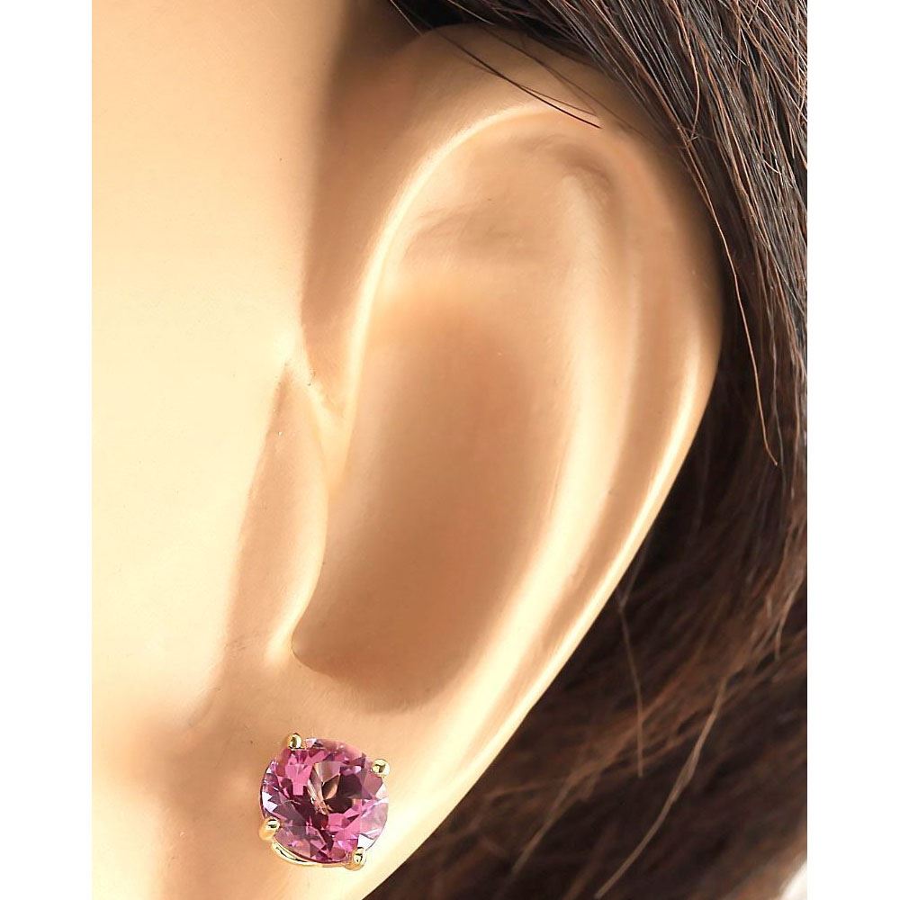 3.00 CTW Natural Pink Tourmaline Earrings 14k Solid Yellow Gold
