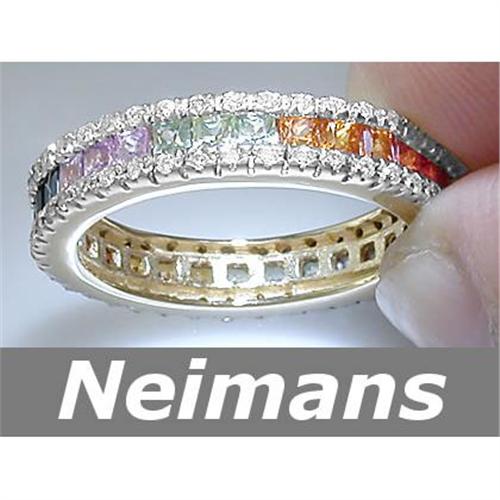 USGL Certified 3.00 Carat Blue, Green, Orange, Pink, Yellow Sapphire & Diamond Eternity Ring elegantly set in solid 14kt gold!!