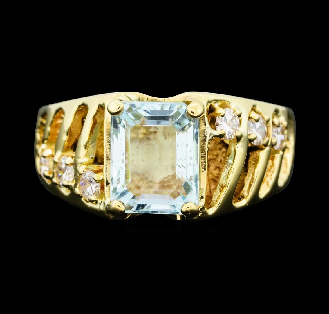 One ring featuring: 14KT yellow gold weighing 8.57 grams containing one aquamarine center weighing 3.00ct and diamonds weighing 0.50ctw.
