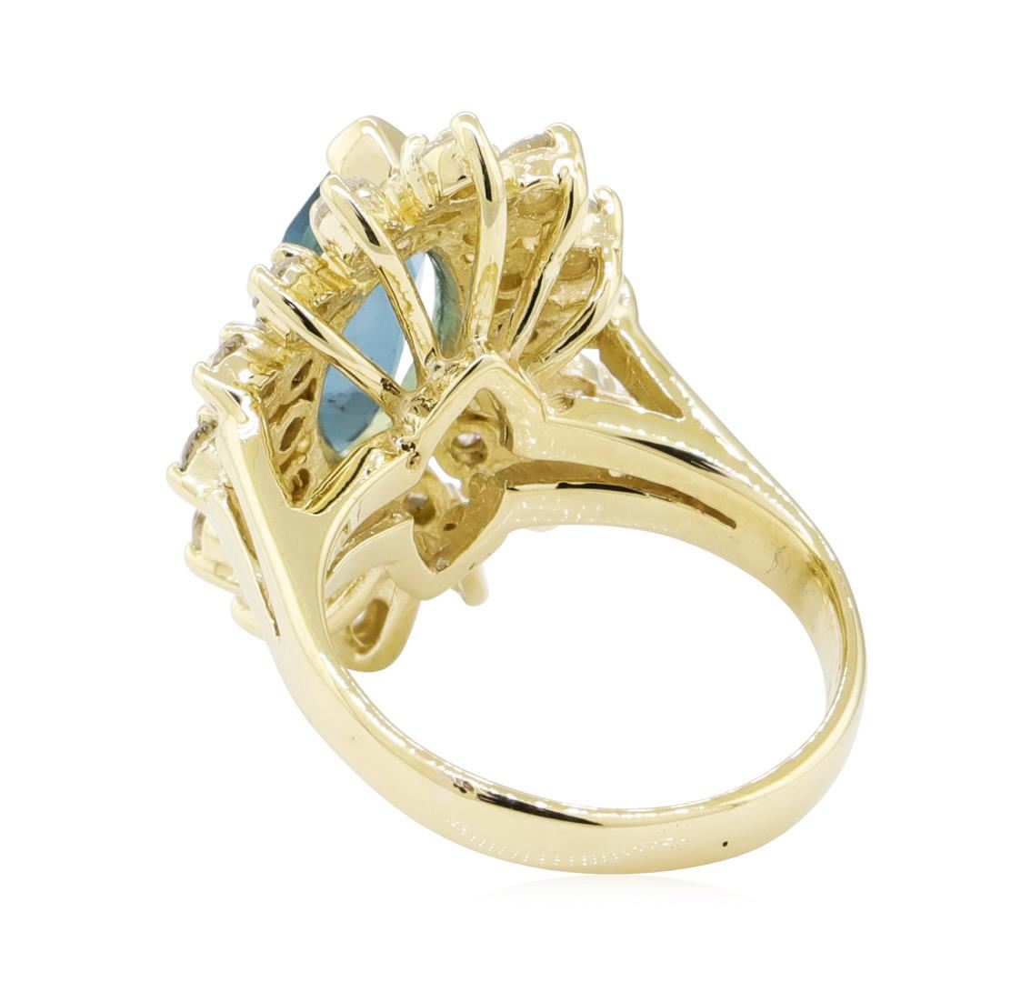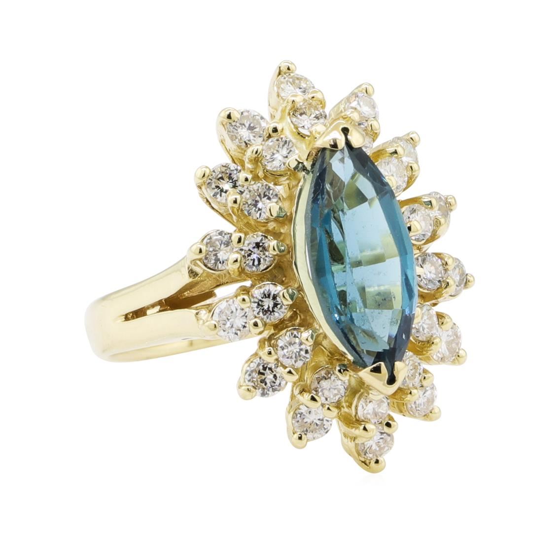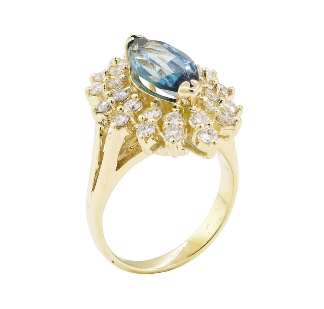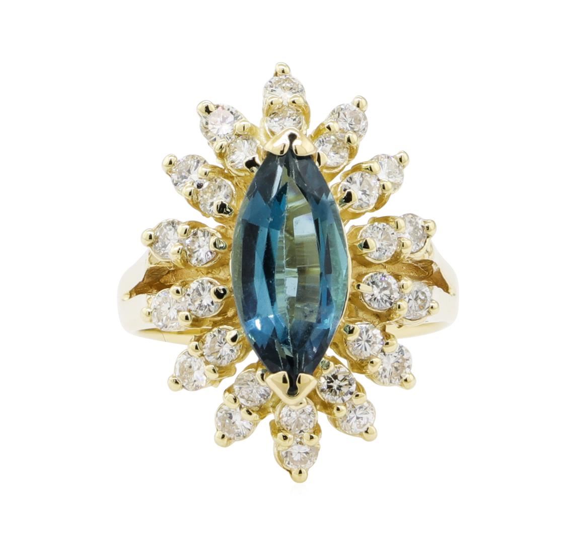 One ring featuring: 14KT yellow gold weighing 5.6 grams containing one blue topaz weighing 2.00ct and diamonds weighing 1.00ctw.