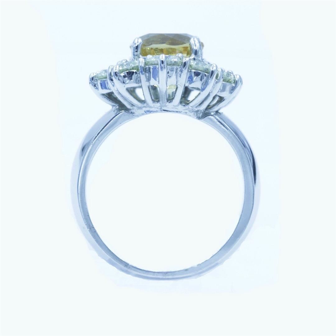 One fashion sunflower ring featuring: 14KT white gold weighing 9.15 grams containing one citrine weighing 3.00ct and 10 diamonds weighing 2.50ctw. The diamonds are round brilliant cut with VS-2-SI-1 clarity and I color. The ring is a size 6.25 but is resi