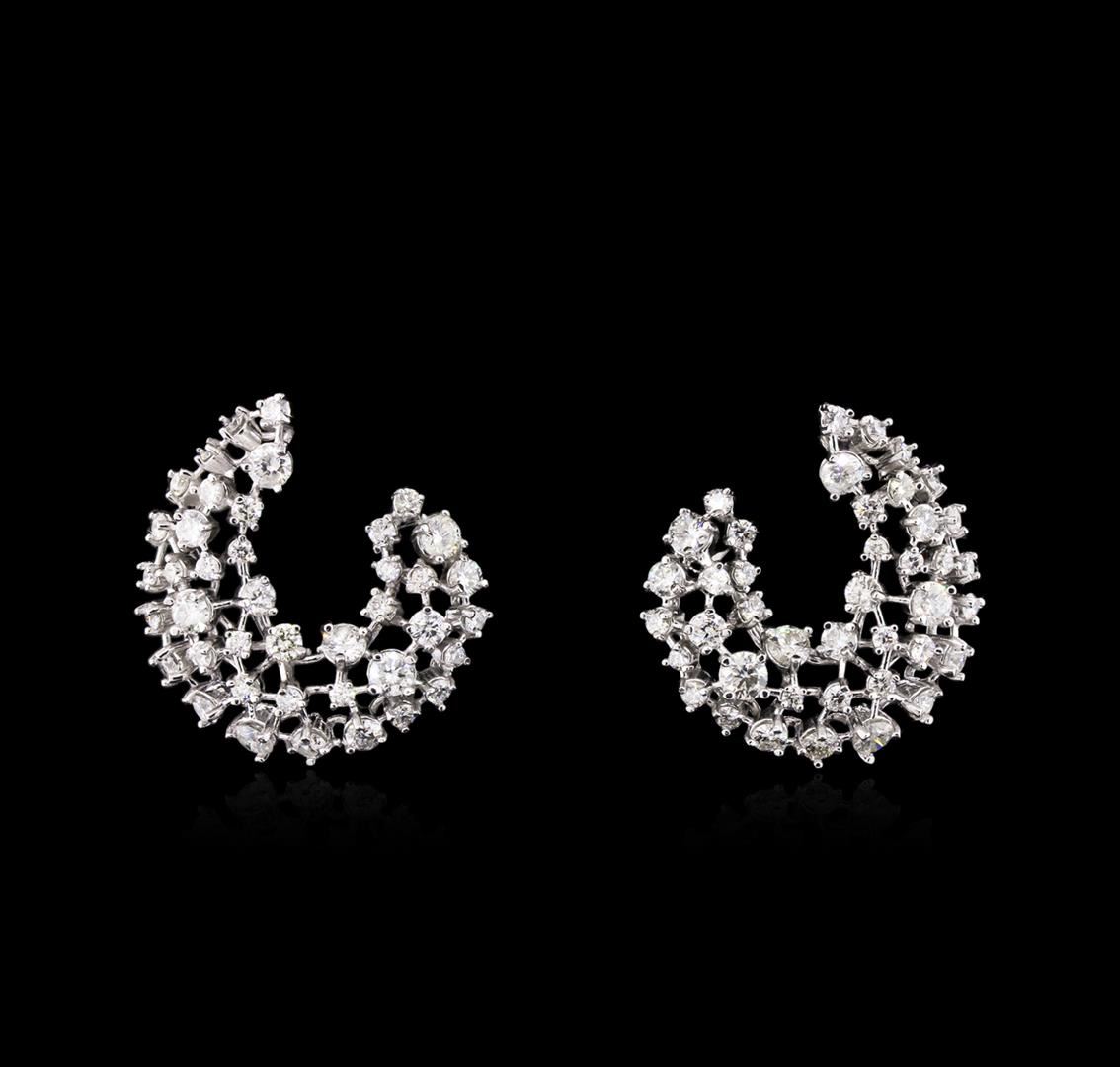 One pair electronically tested 14KT white gold lady's combination cast & assembled fashion earrings with Omega clip backs with posts with a bright polish finish. The featured earrings have a crescent moon motif. Identified with markings of "K14". Condition is new, good workmanship. Containing: Twelve prong set round brilliant cut diamonds, measuring 2.90 - 2.80 x 1.80mm (depth est.) approximate total weight of 12 Stones = 1.06ct. Graded in the setting. Clarity: SI-2 to I-1. Color: G - Good Seventy-Two prong set round brilliant cut diamonds, measuring 2.20 - 1.80 x 1.20mm (depth est.) approximate total weight of 72 Stones = 1.94ct. Graded in the setting. Clarity: SI-1 to I-1. Color: H - I. Cut Good. Total Weight of Diamonds 3.00ct. Total Weight of Earrings 9.50gm. GAS Appraised at $8,670.00.