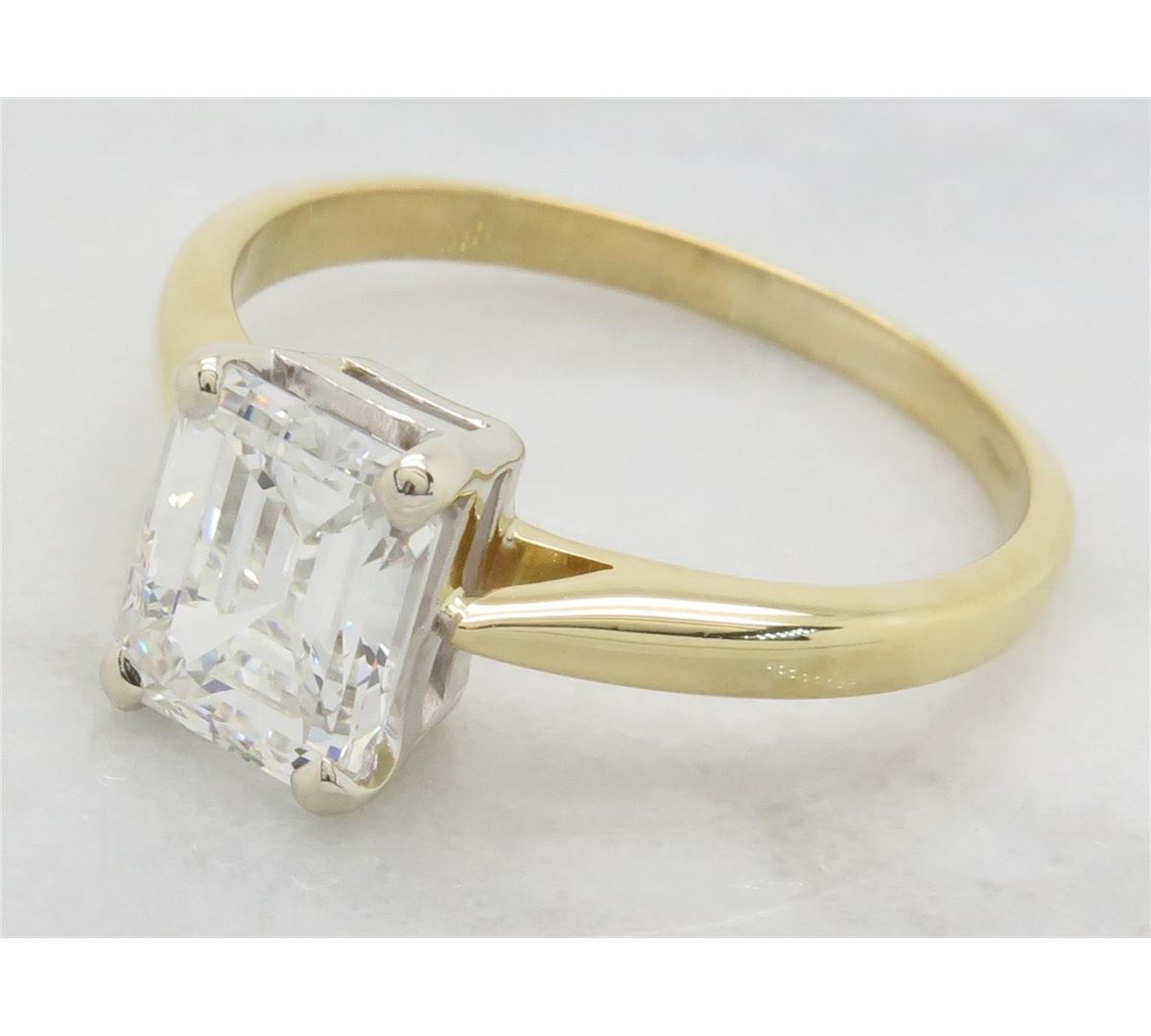 One tested 18K yellow gold diamond ring and wrap. Containing: One Emerald Cut Diamond. Approximate size: 2.00CT. Clarity: VS2, Color: F-G. The wrap consists of 6 Round Brilliant Cut Diamonds and 4 round rubies. Approximate total ruby weight: .80CTW. Approximate total diamond weight in wrap: 1.00CTW. Diamonds are graded in the mounting, unless otherwise stated. Weight: 10.0 grams, Size: 8.0.