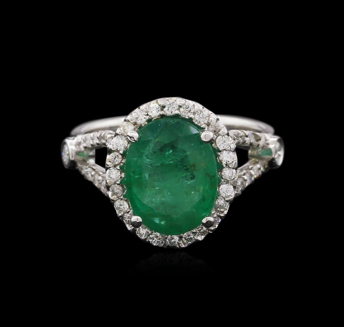 One ring featuring: 14KT white gold weighing 4.56 grams containing one emerald with a total weight of 3.00ct and diamonds with a total weight of 0.61ct.
