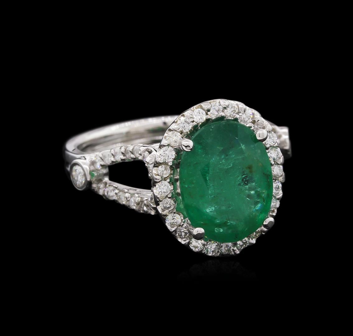 One ring featuring: 14KT white gold weighing 4.56 grams containing one emerald with a total weight of 3.00ct and diamonds with a total weight of 0.61ct.