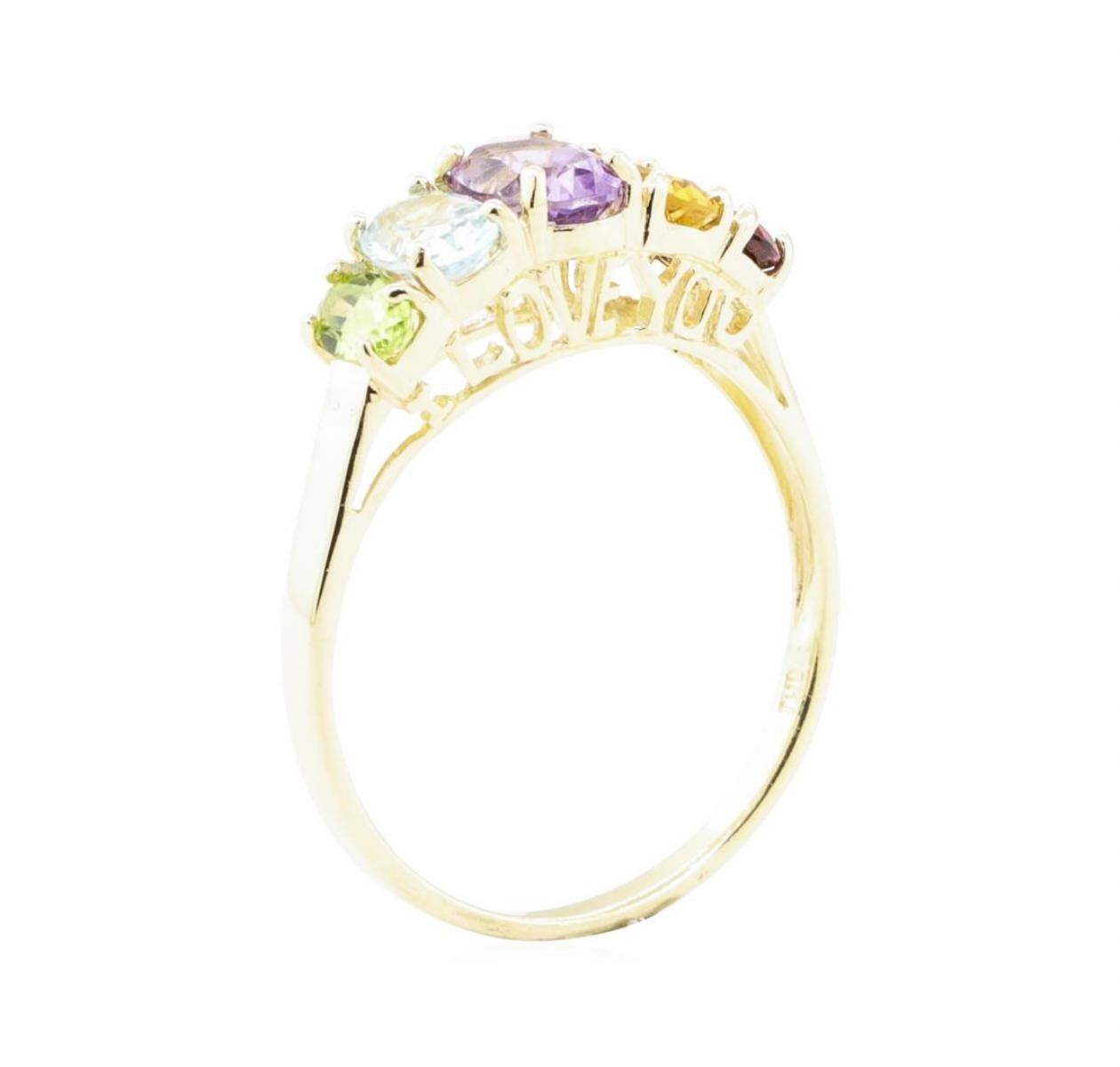 One rainbow-colored gemstone ring featuring: 10KT yellow gold weighing 2.7 grams containing rainbow-colored gemstones weighing 3.00ctw.