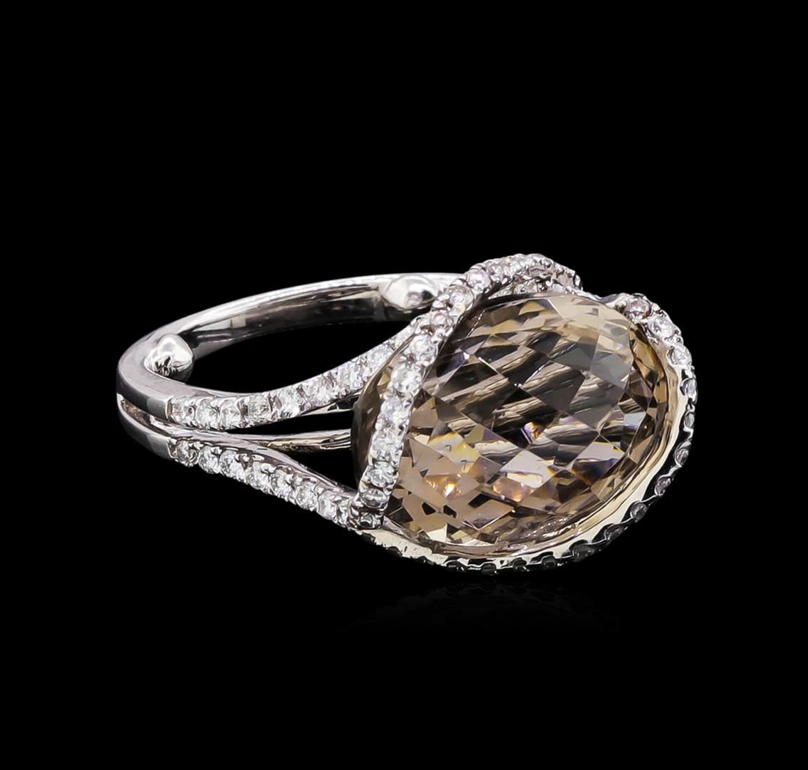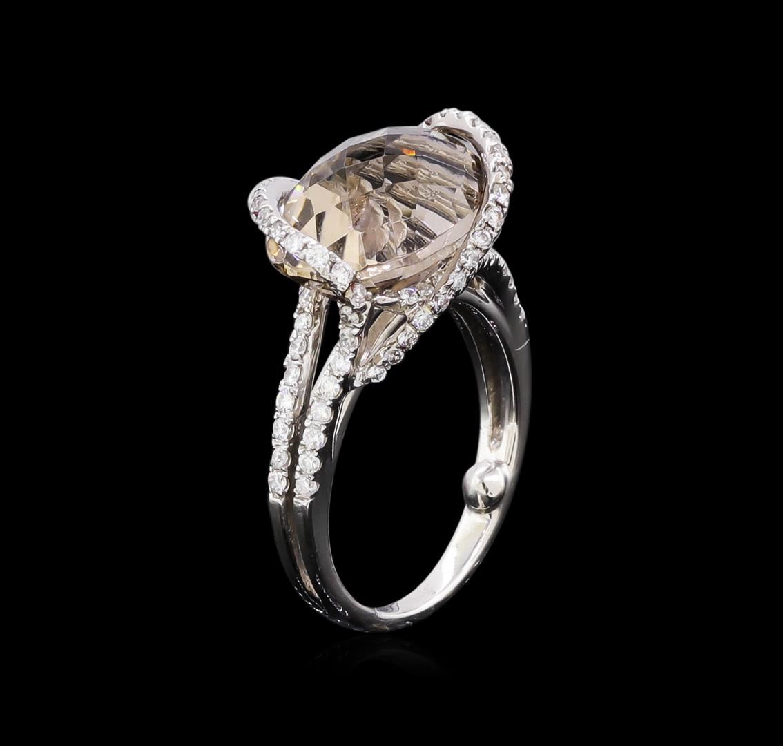 One ring featuring: 18KT white gold weighing 5.30 grams containing one smoky quartz with a total weight of 3.00ct and side diamonds with a total weight of 0.75ct.