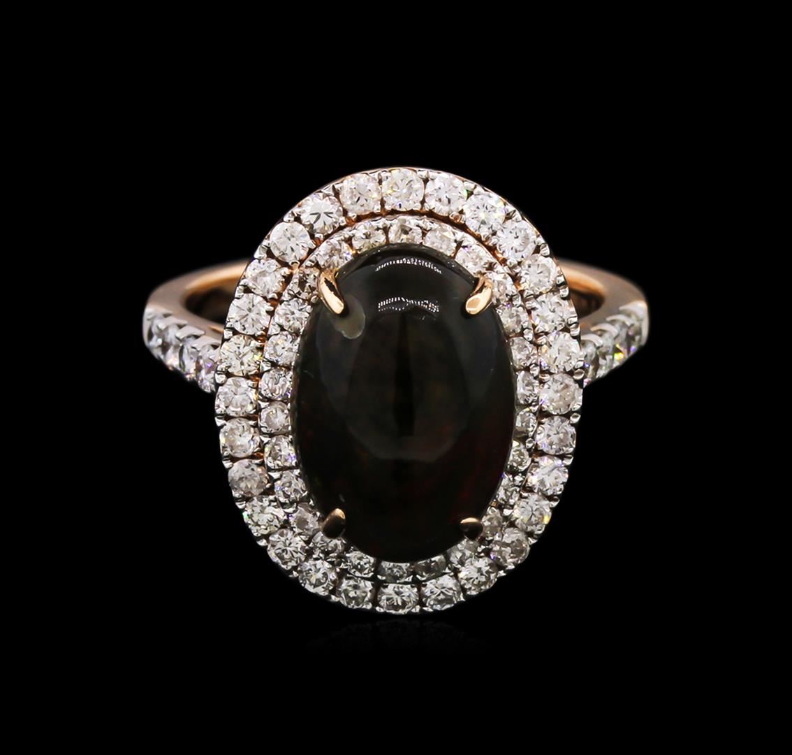 One ring featuring: 14KT rose gold weighing 5.50 grams containing one opal with a total weight of 3.00ct and diamonds with a total weight of 1.15ct.