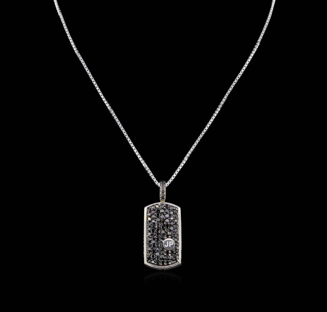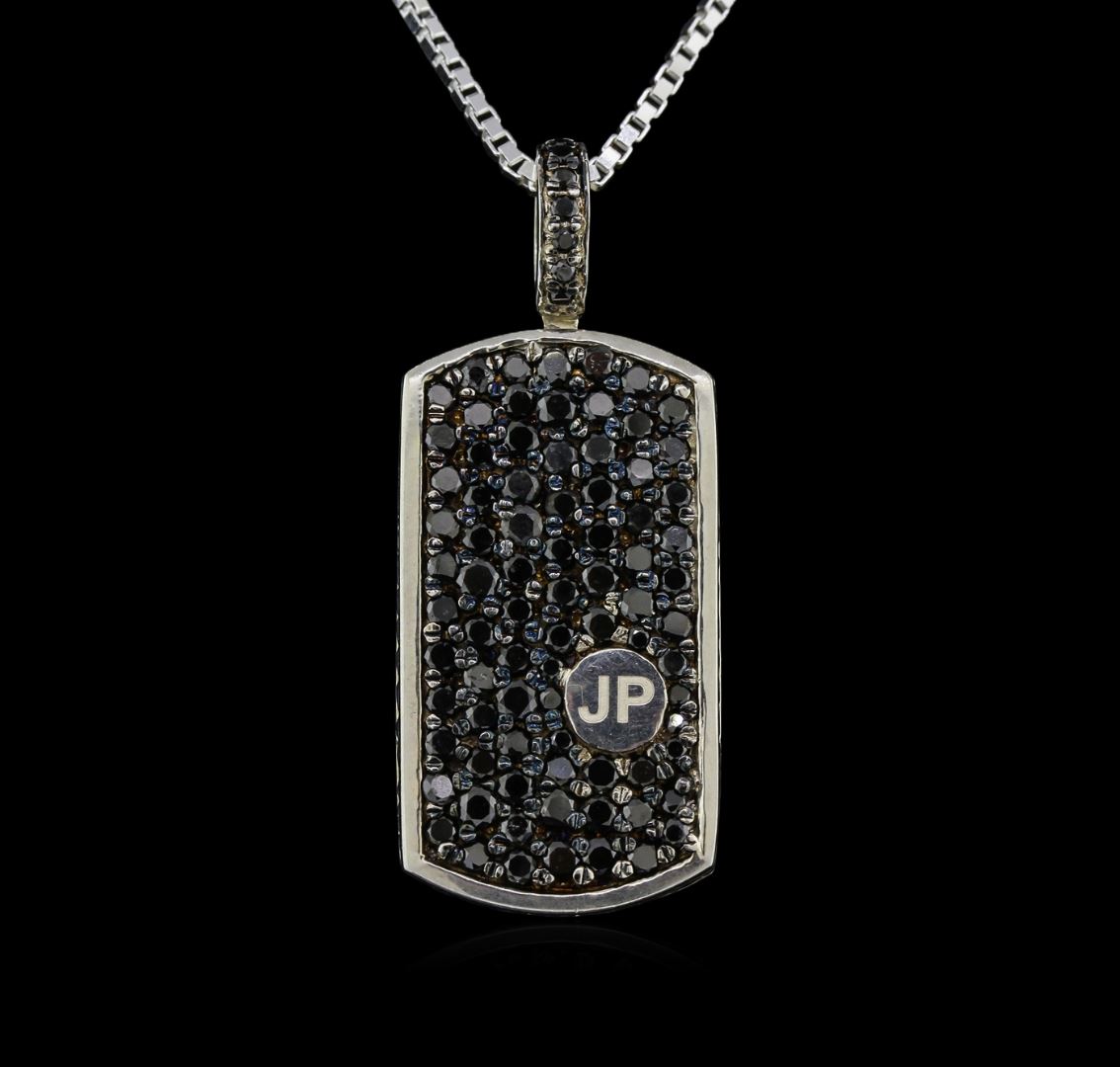 One pendant with chain featuring: silver with a total weight of 21.20 grams containing black diamonds with a total weight of 3.00ct.