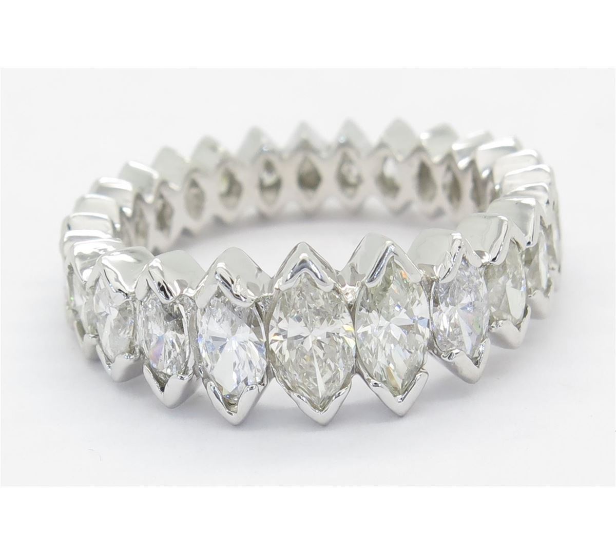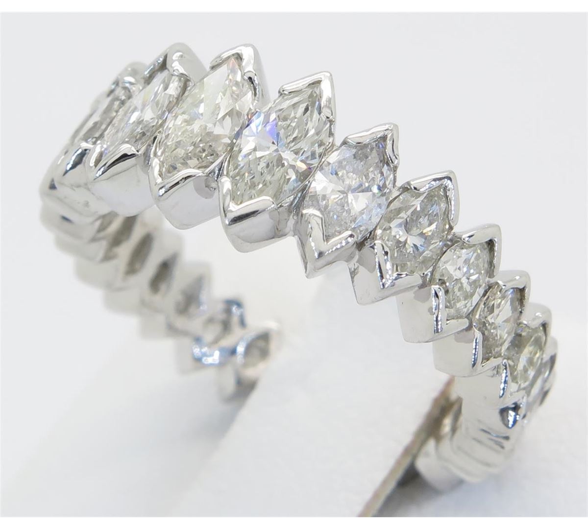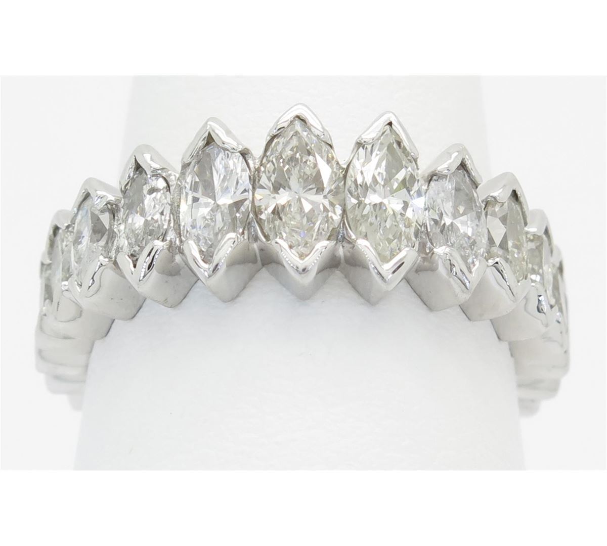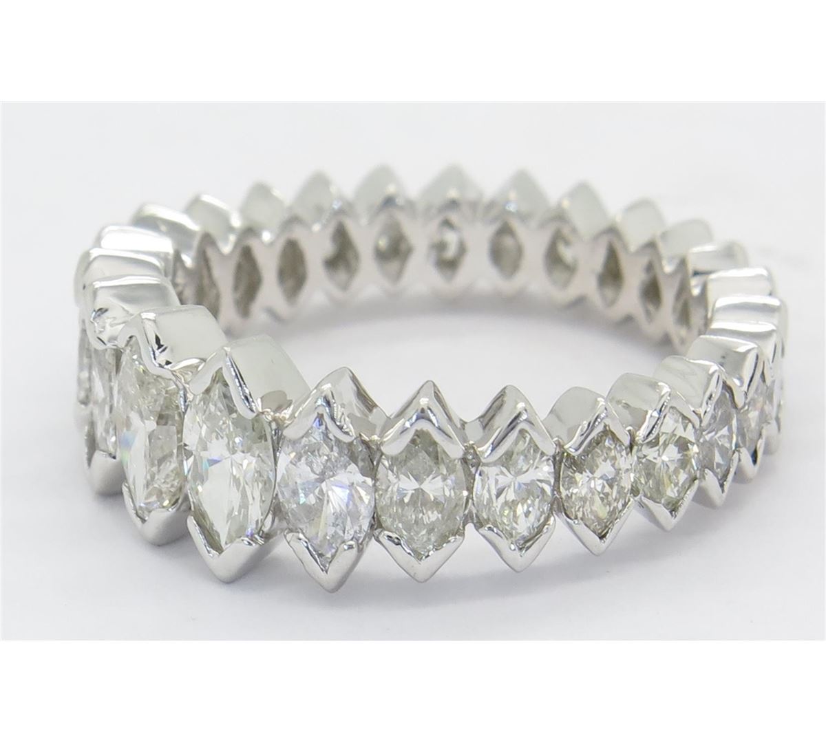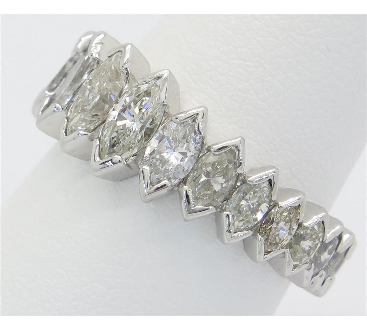 One tested 14K white gold diamond ring. Containing: 26 Marquise Cut Diamonds, Clarity: I-SI, Color: G-K. Approximate total diamond weight: 3.00CTW. All diamonds are graded in the mounting unless otherwise stated. Weight of ring: 4.6 grams, Size: 6.0.