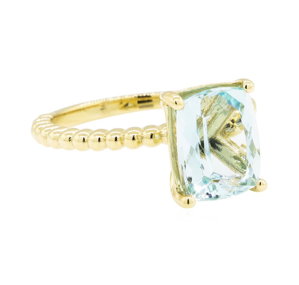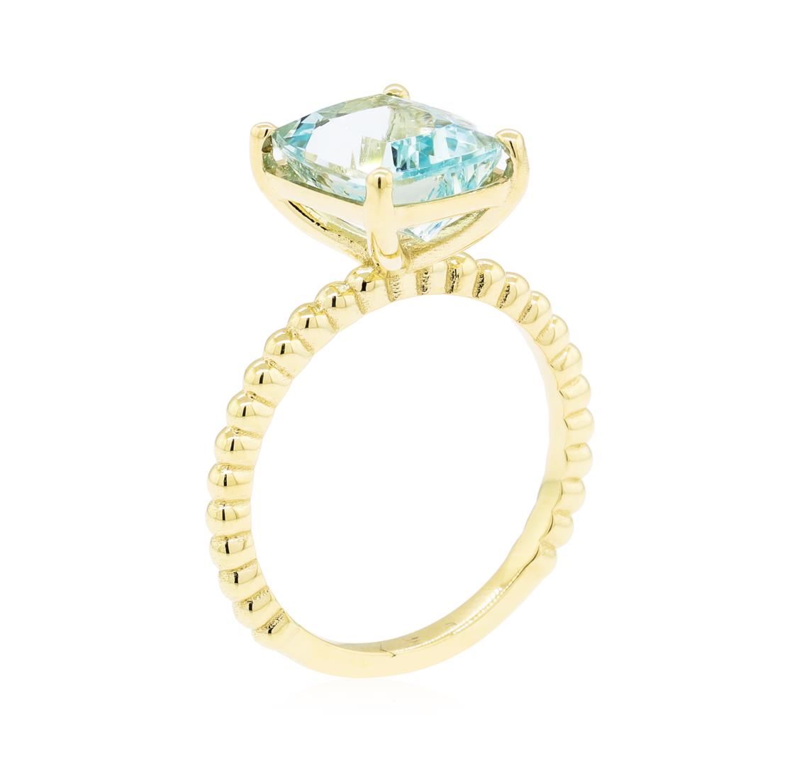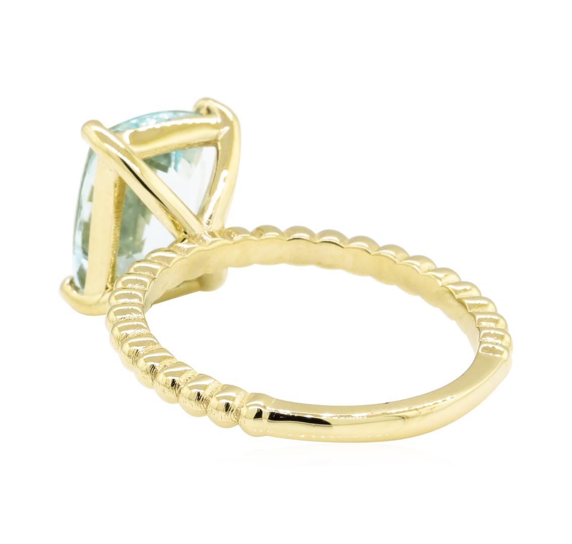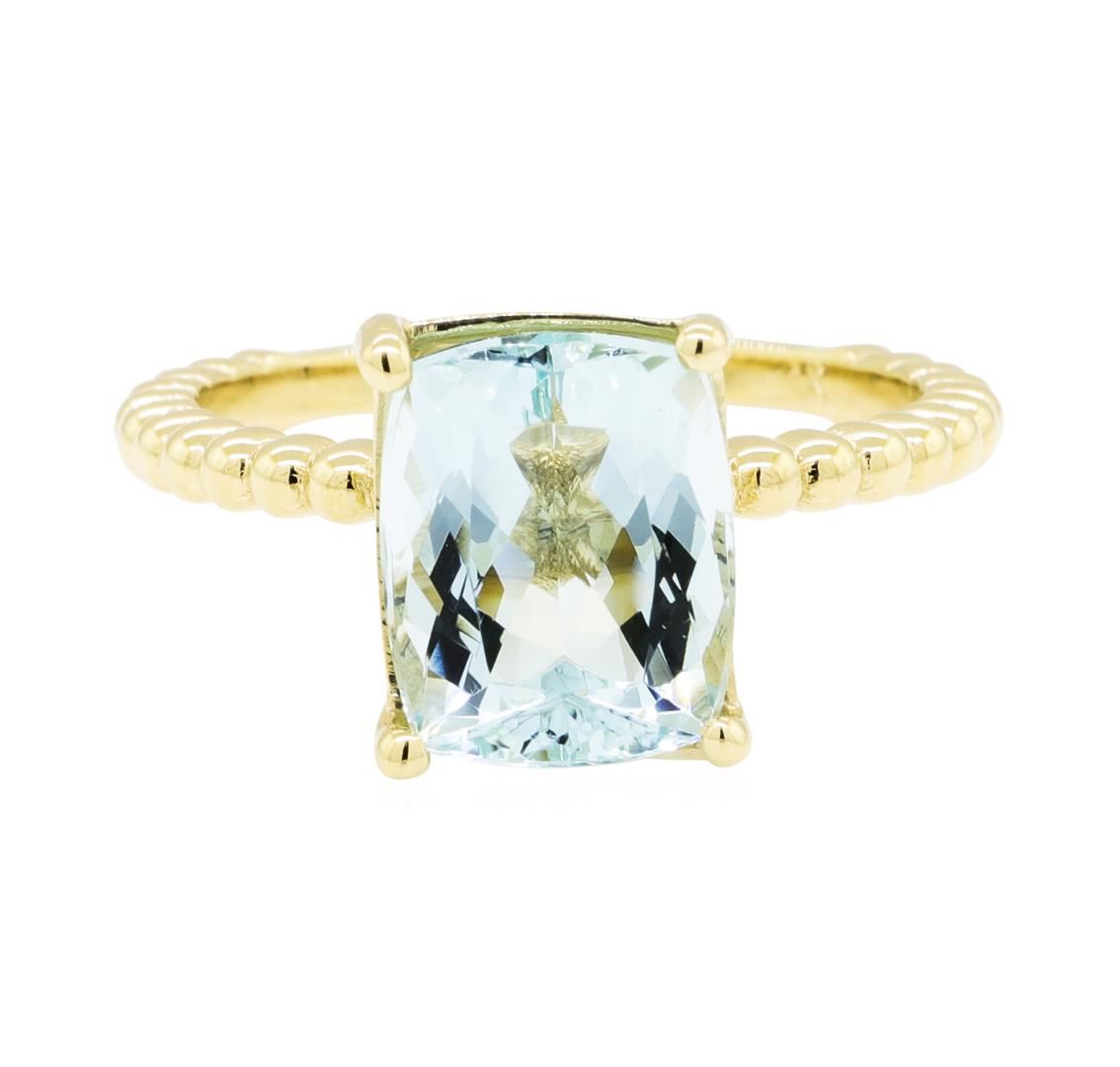 One lady's ring featuring: 14KT yellow gold weighing 3.5 grams containing one aquamarine weighing 3.01ct.