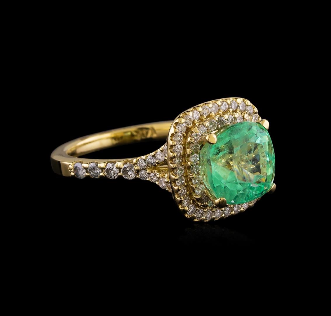 One ring featuring: 14KT yellow gold weighing 4.40 grams containing one emerald with a total weight of 3.01ct and diamonds with a total weight of 0.65ctw.