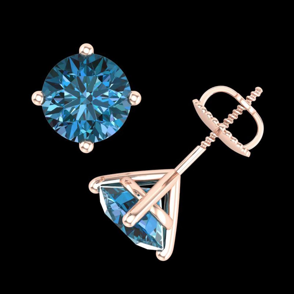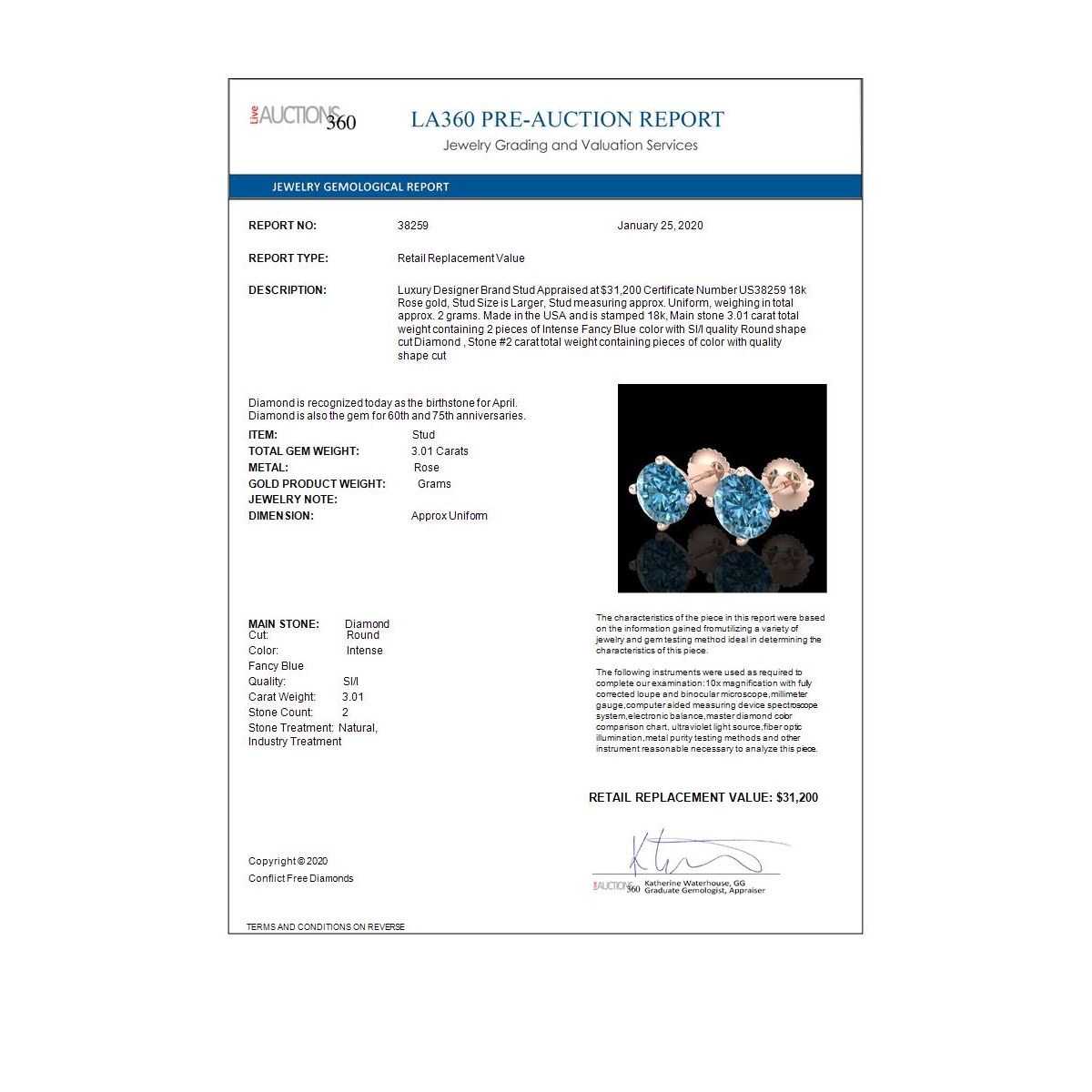 REF-354H5R - SKU: 38259 ---- 3.01 ctw Fancy Intense Blue Diamond Art Deco Earrings 18k Rose Gold