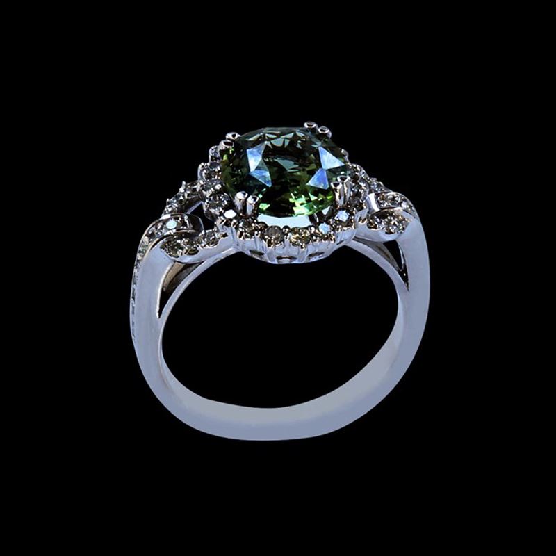 14K W/G NATURAL CEYLON GREEN SAPPHIRE RING: 4.79GM/GREEN SAPPHIRE: 3.01CT/DIA: 0.52CT/#GVR1386