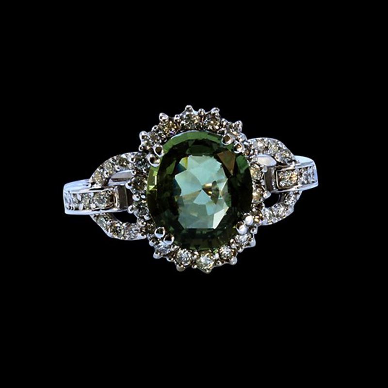 14K W/G NATURAL CEYLON GREEN SAPPHIRE RING: 4.79GM/GREEN SAPPHIRE: 3.01CT/DIA: 0.52CT/#GVR1386