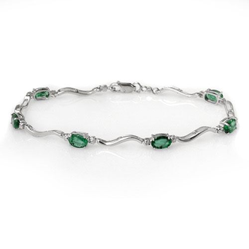 3.02 CTW Emerald & Diamond Bracelet 10K White Gold ---- Luxury Designer Brand Bracelet Appraised Retail Price at $2,350 ---- SKU Number US10896 10k White gold Bracelet Size is 7 Inches, Bracelet measuring approx. 7" x 1/8", weighing in total approx. 6 grams. Made in the USA and is stamped 10k, Main stone 4 carat total weight containing 6 pieces of Intense Green color with AAA quality Oval shape cut Emerald , Stone #2 0.02 carat total weight containing 2 pieces of H-I color with VS/SI quality Round shape cut