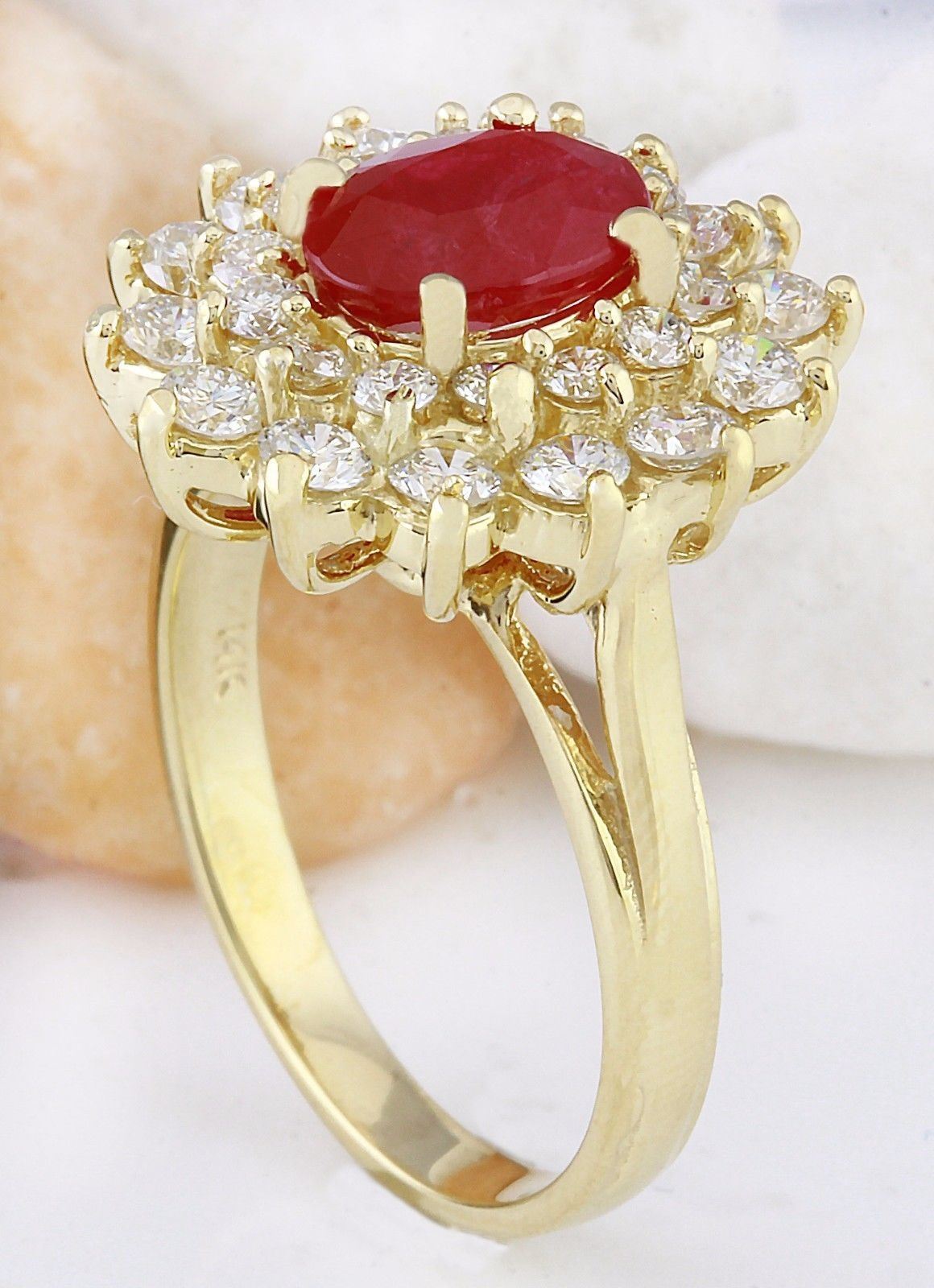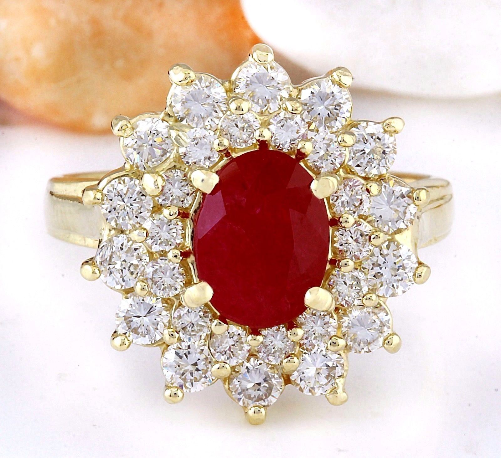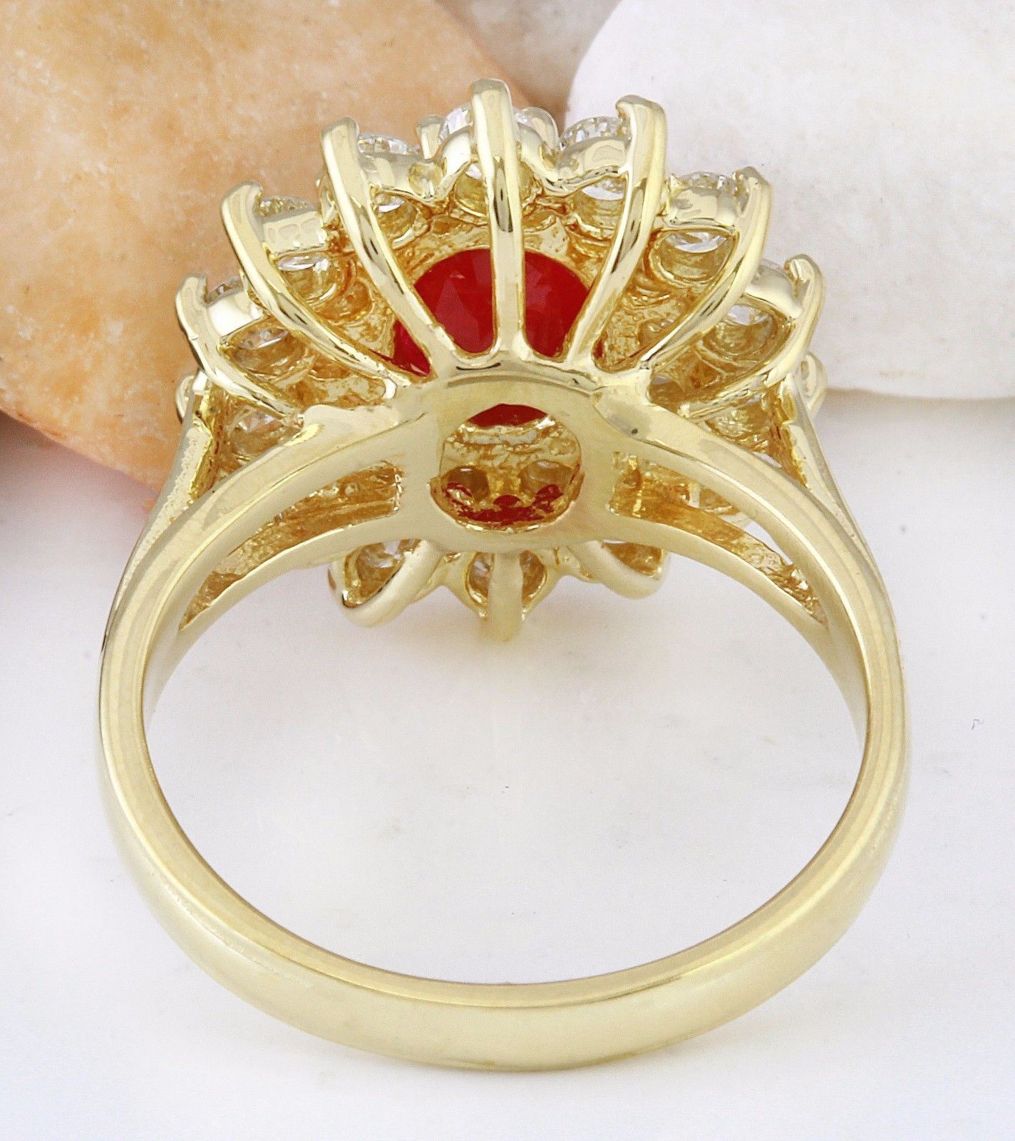 3.02 Carat Natural Ruby 14K Solid Yellow Gold Diamond Ring