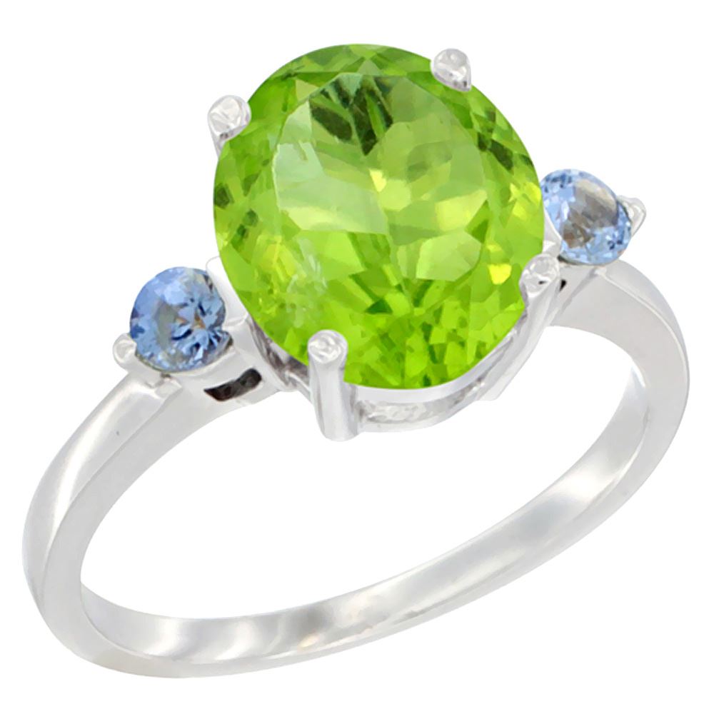 REF-36H3M - SKU: SC-CW41132218 ---- 3.02 CTW Peridot & Blue Sapphire Ring 14K White Gold