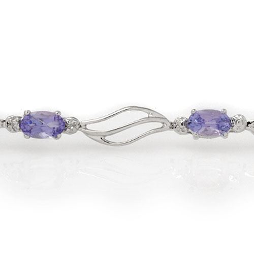 REF-53W6F -10865 ---- 3.02 CTW Tanzanite & Diamond Bracelet 10K White Gold ---- Luxury Designer Brand Bracelet Appraised at $3,850 Certificate Number US10865 10k White gold, Bracelet Size is 7 Inches, Bracelet measuring approx. 7" x 1/8", weighing in total approx. 6.6 grams. Made in the USA and is stamped 10k, Main stone 3 carat total weight containing 7 pieces of Intense Violet Blue color with AAA quality Oval shape cut Tanzanite , Stone #2 0.02 carat total weight containing 2 pieces of H-I color with VS/SI quality Round shape cut Diamond