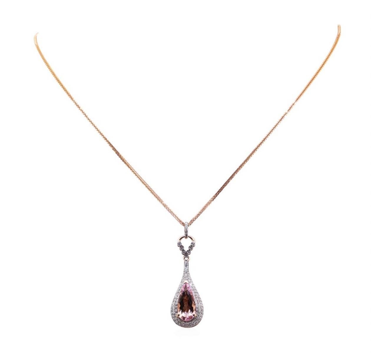 One 3.02ct Morganite and Diamond Pendant With Chain - 14KT Rose Gold. AIG certified. See Appraisal for more details. AIG Appraised.