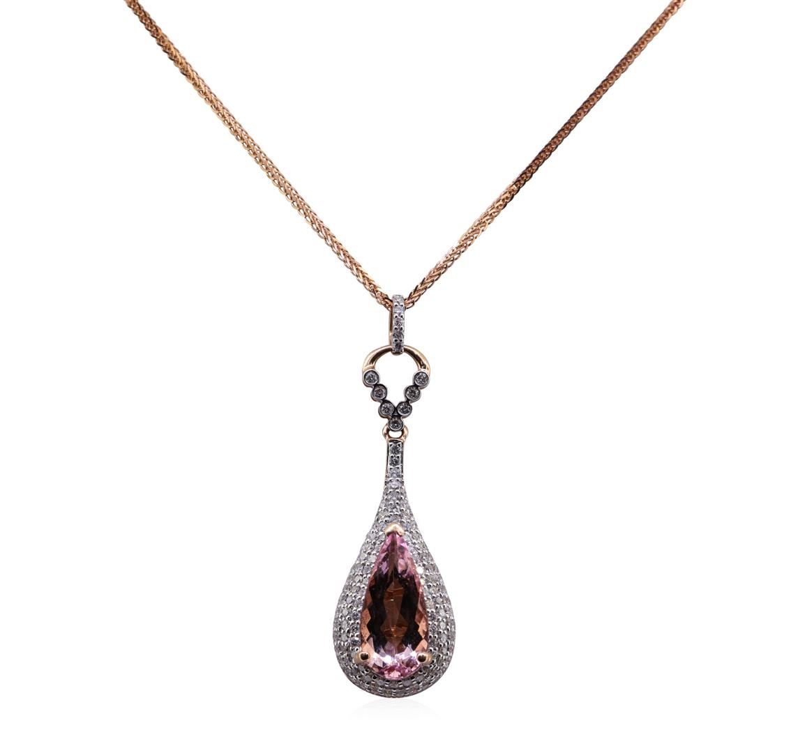 One 3.02ct Morganite and Diamond Pendant With Chain - 14KT Rose Gold. AIG certified. See Appraisal for more details. AIG Appraised.